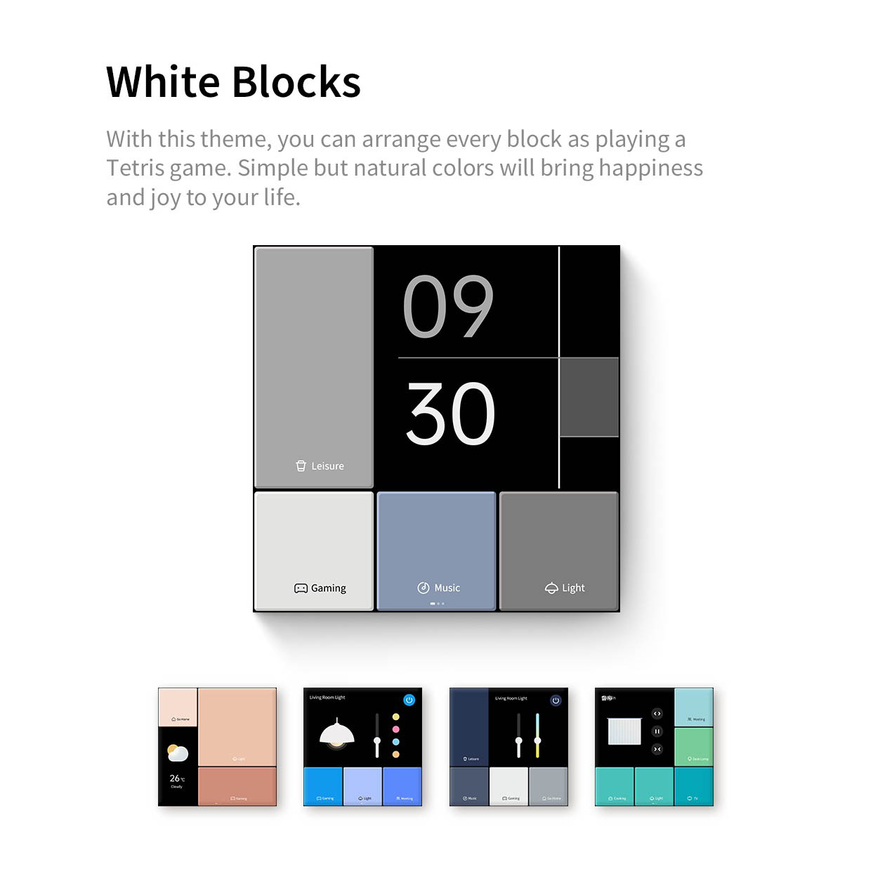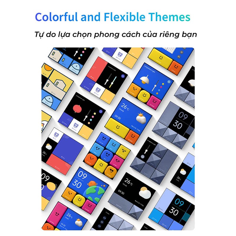 - Các thiết bị tương thích Apple HomeKit khác Thiết kế hiện đại phù hợp với nhiều không gian khác nhau Aqara Magic Switch S1E có thể thay đổi giao diện từ một trong 54 mẫu có thể tùy chỉnh. Các themes có thể tùy chỉnh theo từng trang để phù hợp với không gian và kiến trúc của căn nhà. Một số lưu ý khi sử dụng màn hình cảm ứng Aqara S1