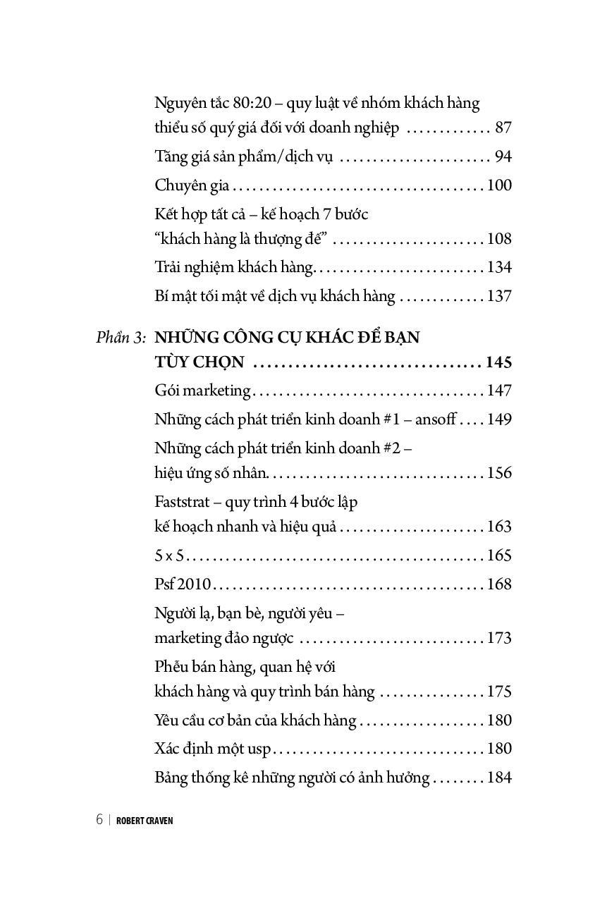Vì không phải ai cũng có cơ hội tham gia các hội thảo của Robert Craven thế nên Robert Craven viết cuốn sách này để chia sẻ rộng rãi những kiến thức về marketing. Nội dung sách không hề rối rắm, không lý thuyết suông, bao gồm những bước đơn giản, thực tế mà bạn có thể áp dụng để tăng lợi nhuận và doanh số cho công ty.