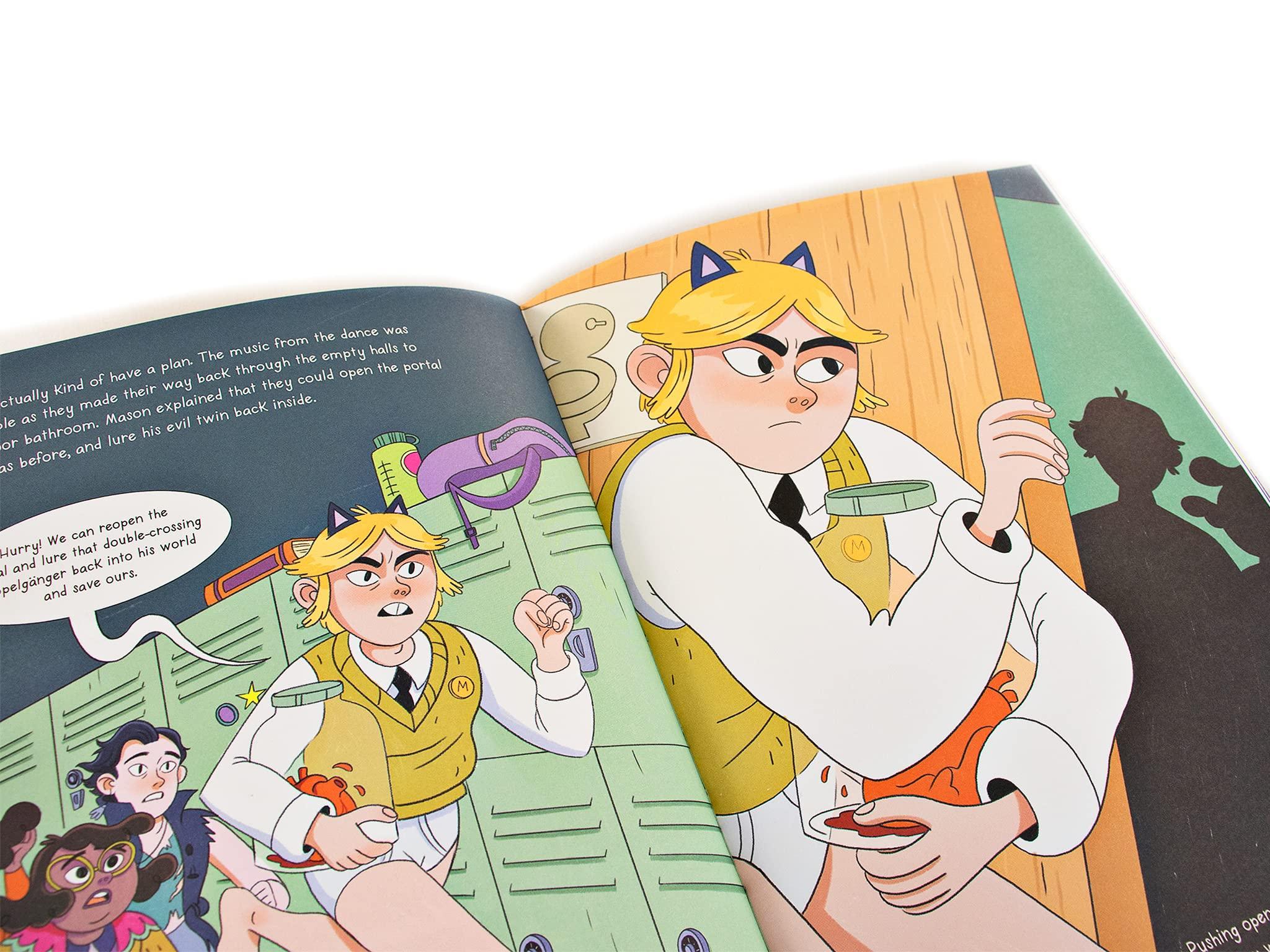It's Halloween in Grimbrook, and Mason and his trusty assistant (and only friend) Iris are ready to cut loose at the Grimbrook middle school dance. But when the discovery of a haunted mirror cuts things short, Mason and Iris are on the case, ready to stand between Grimbrook and their horrible doppelgängers from the mirror dimension! Get ready for more mystery, more magic, and a shocking kiss that could shake things up for our favorite paranormal investigators forever!
