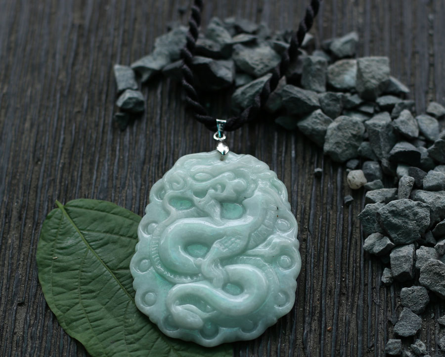✨Mặt Dây Chuyền Cẩm Thạch Chạm Rồng Ngọc Quý Gemstones MD39 (5 x 4 cm)