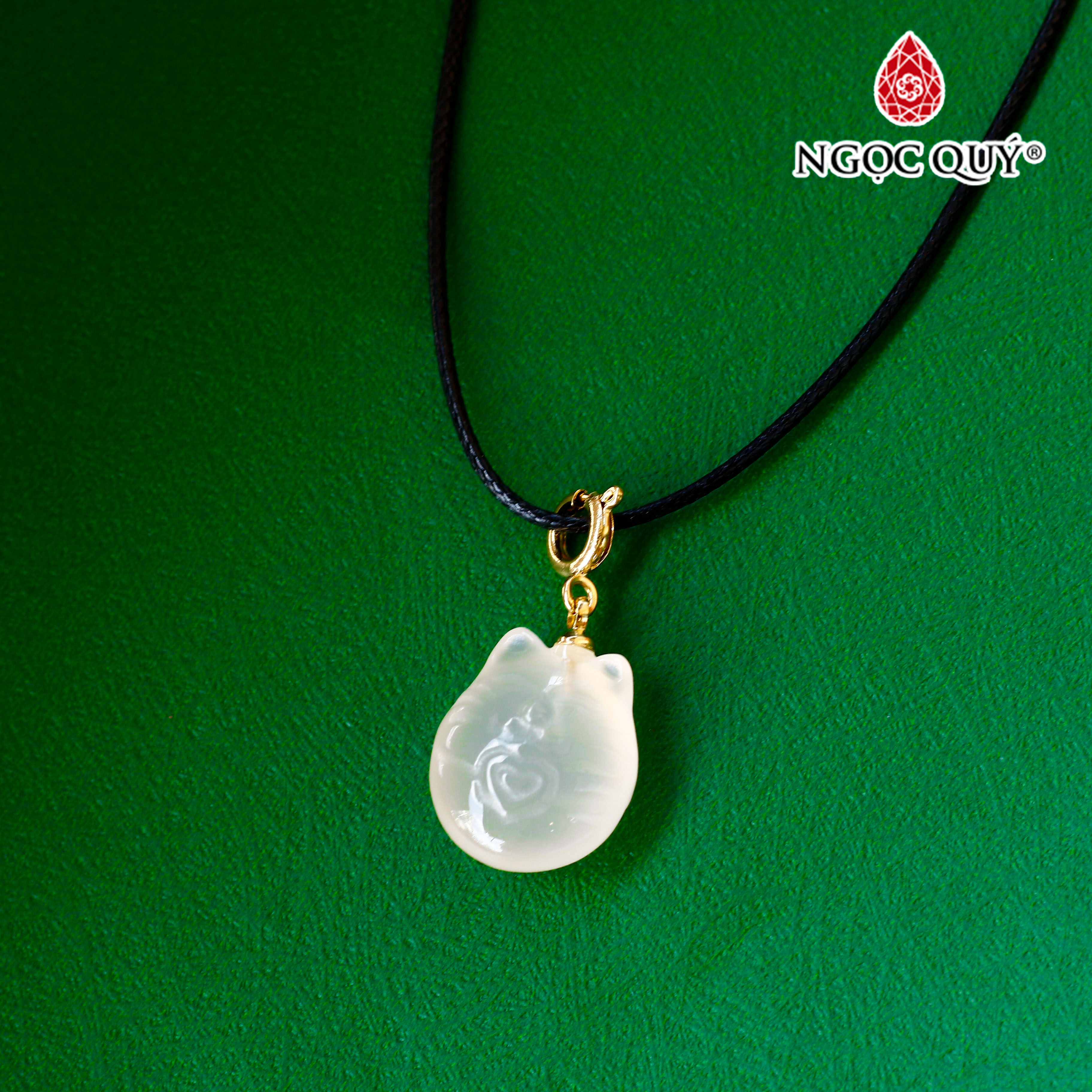 ✨Mặt dây chuyền con mèo đá mã não trắng - Ngọc Quý Gemstones