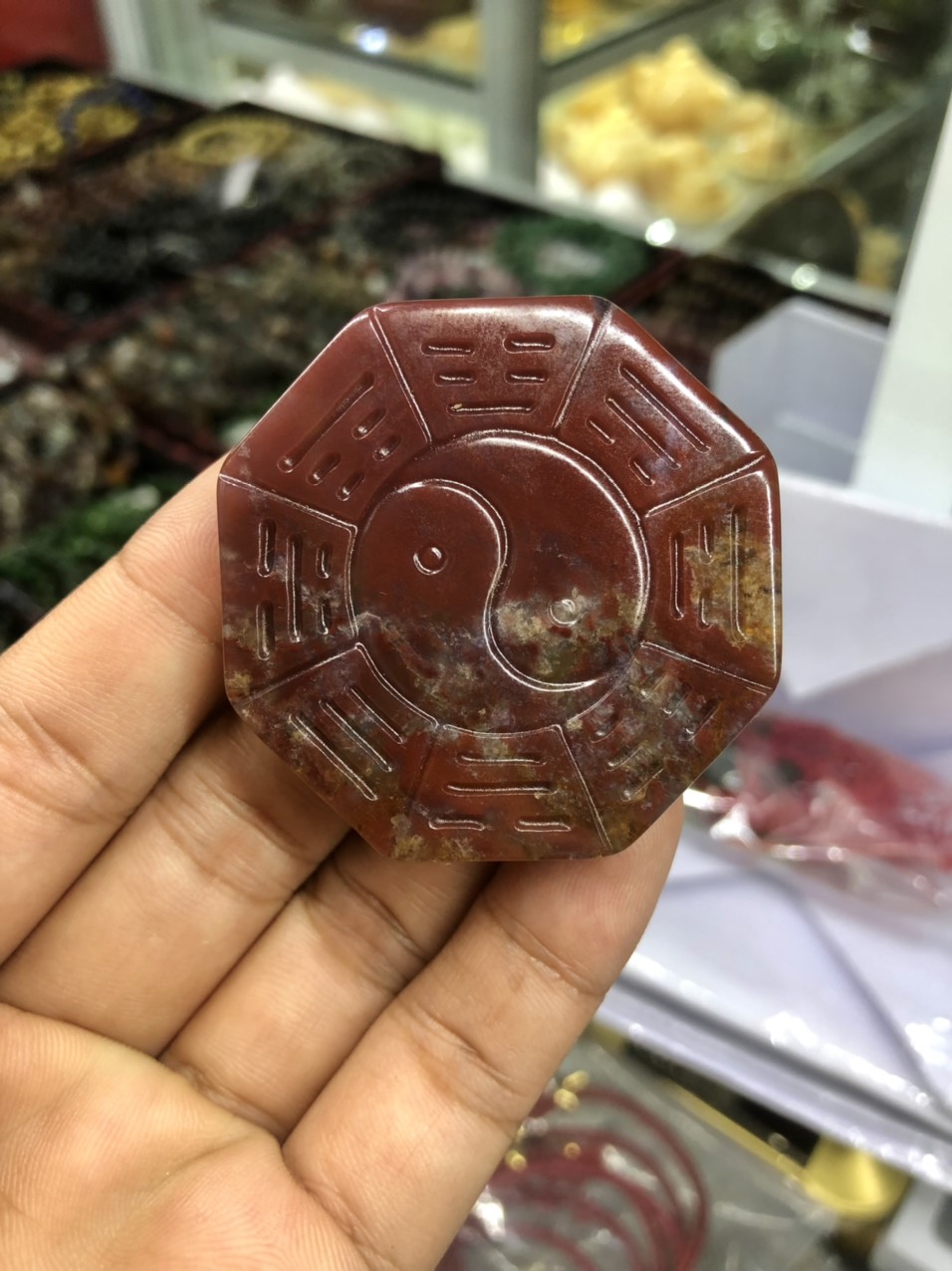 ✨Mặt dây chuyền đeo cổ bát quái phong thủy đá ngọc băng tảo
