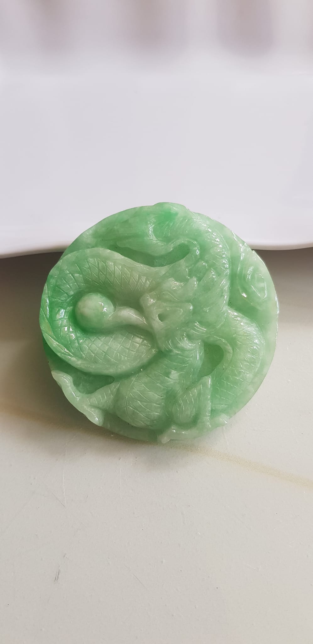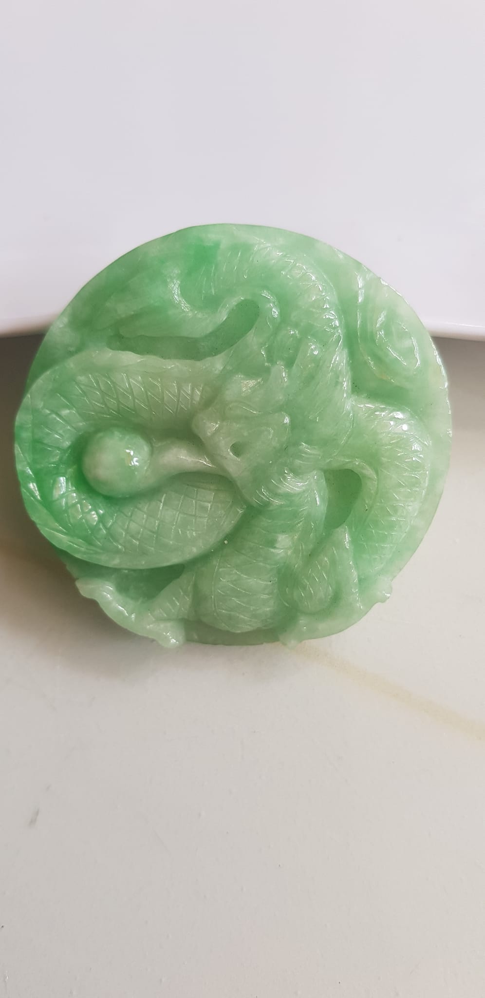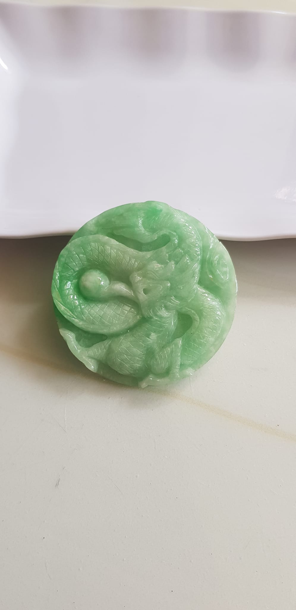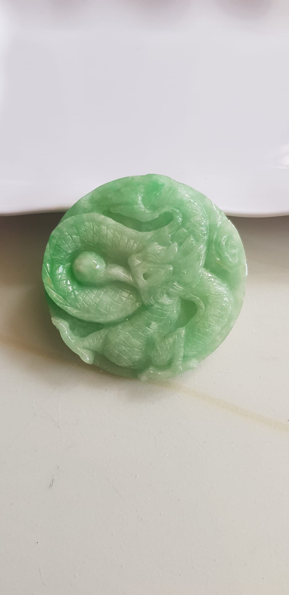 ✨Mặt dây chuyền Nam to trạm rồng lượn nổi nhả ngọc đá ngọc cẩm thạch tự nhiên Size tròn to đường kính 53mm x dầy 6mm Màu xanh Ngọc Tươi bóng đẹp lắm luôn nam bọc vàng đeo với dây chuyền của mình thiệt đẹp lắm luôn nha ạ