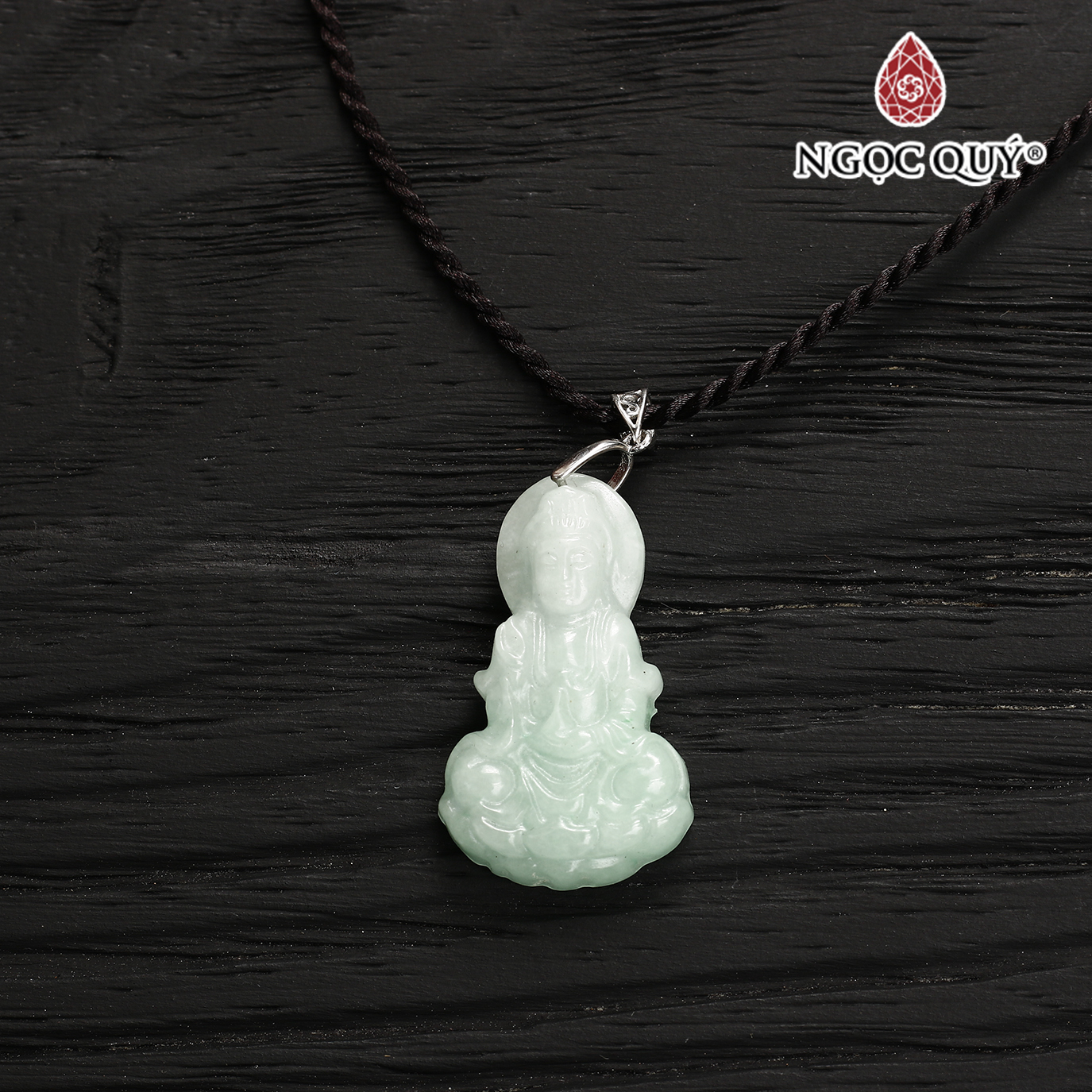 Mặt Phật Bà đứng Cẩm Thạch xanh trắng lí - Chất liệu: Ngọc Cẩm Thạch tự nhiên. - Màu sắc: Xanh lí phớt trắng - Kích thước: ngang 49mm, cao 23mm, dày 4mmx8mm - Mã kiểm định: 86691 - Tiêu chuẩn