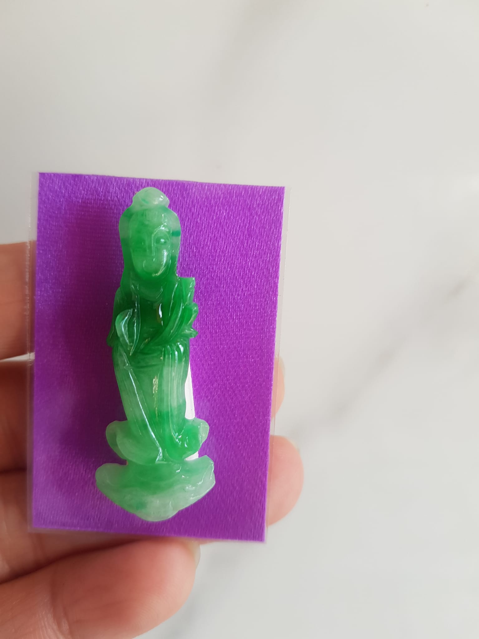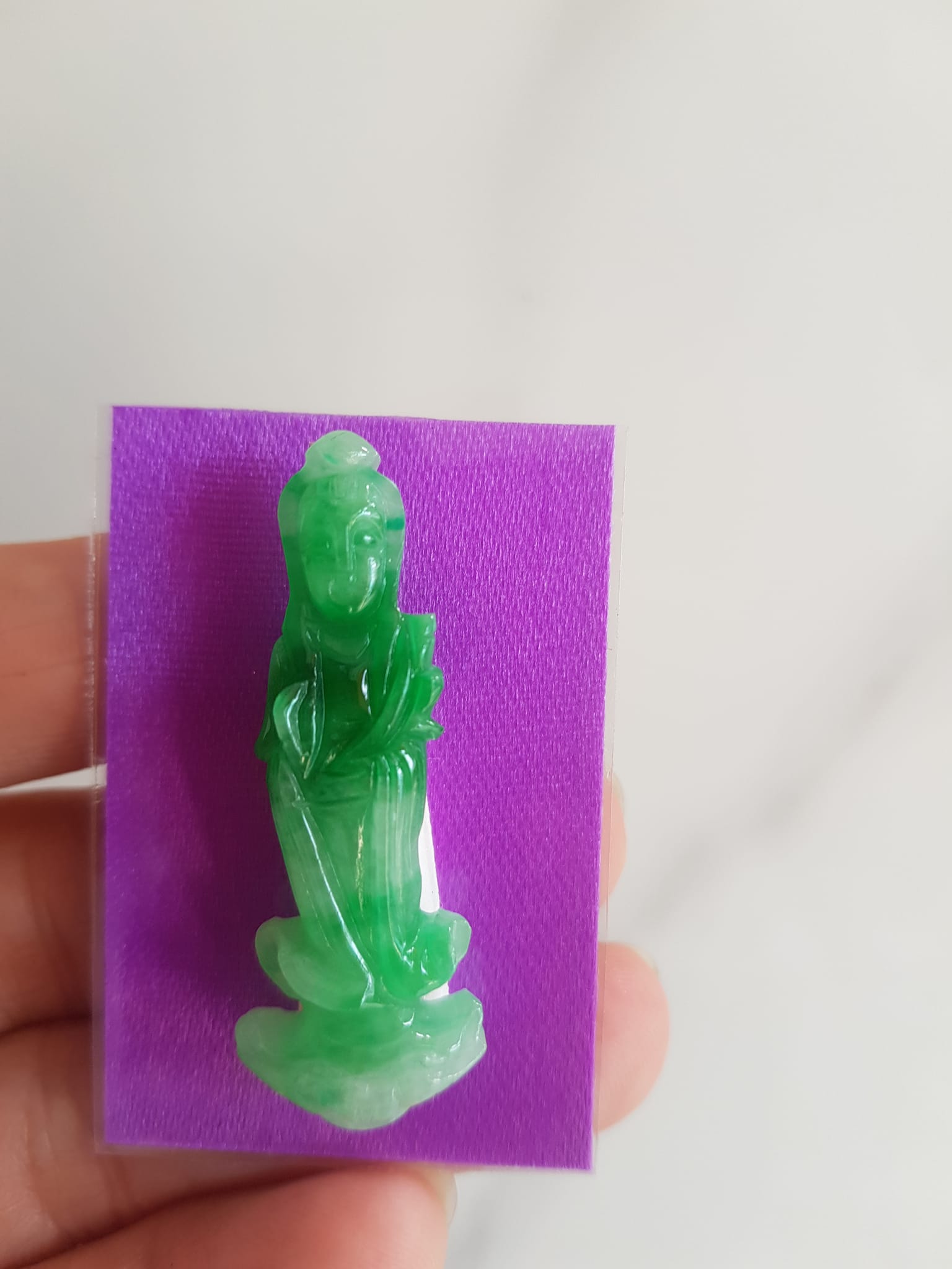 ✨MẶT DÂY CHUYỀN PHẬT MẸ QUAN ÂM ĐỨNG MỚI ĐÁ CẨM THẠCH TỰ NHIÊN MÀU XANH NGỌC TRẮNG ĐỀU BÓNG BỌC VÀNG ĐEO ĐẸP Cao 43mmx15mmx4mm Ạ