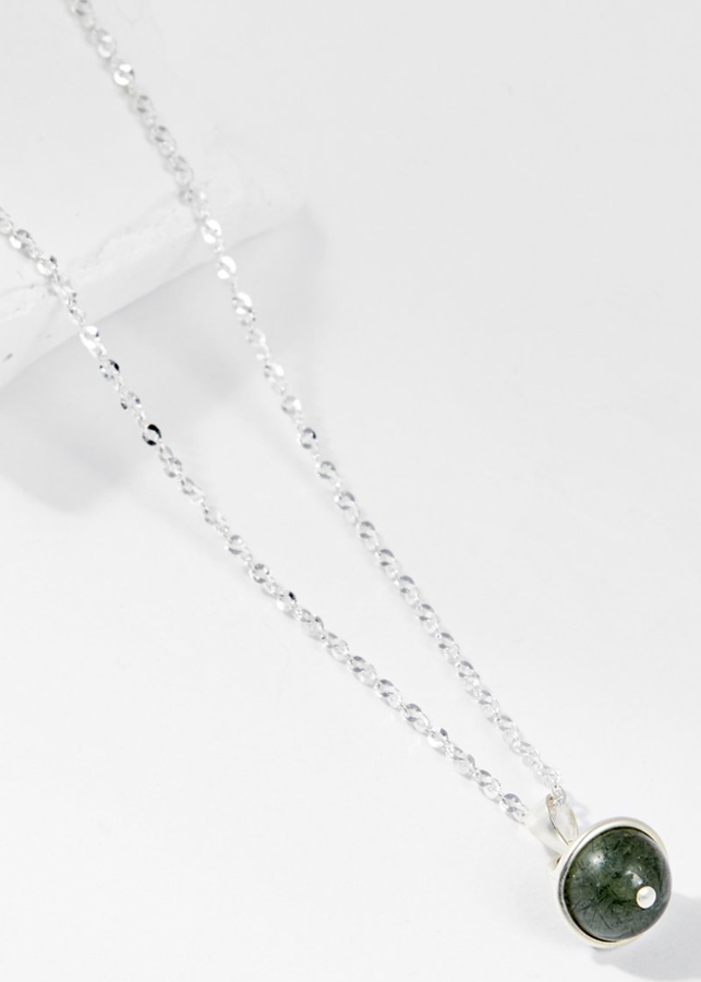 Mặt Dây Chuyền Phong Thủy Đá Thạch Anh Tóc Xanh 1 Hạt Tặng Dây Chuyền Bạc (8mm) Mệnh Mộc, Hỏa