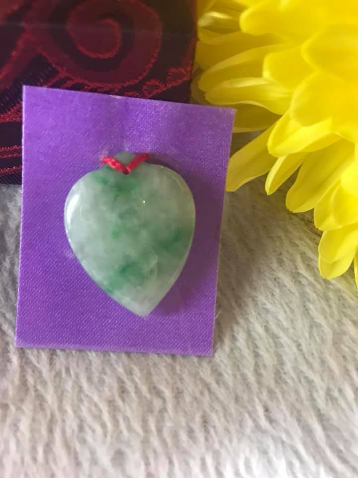 ✨MẶT DÂY CHUYỀN TRÁI TIM BÔNG TRẮNG XANH LÁ BÓNG ĐẸP SIZE DÀI 27MMX NGANG 22MM X SÂU 6MM CHẤT LIỆU ĐÁ CẨM THẠCH TỰ NHIÊN
