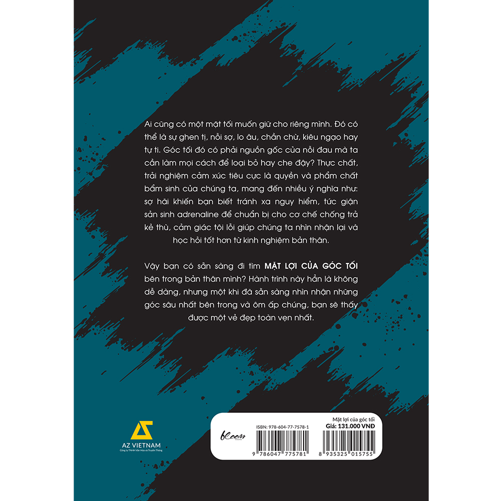 Ai cũng có một mặt tối muốn giữ cho riêng mình. Đó có thể là sự ghen tị, nỗi sợ, lo âu, chần chừ, kiêu ngạo hay tự ti… Góc tối đó có phải nguồn gốc của nỗi đau mà ta cần làm mọi cách để loại bỏ hay che đậy? Thực chất, trải nghiệm cảm xúc tiêu cực là quyền và phẩm chất bẩm sinh của chúng ta, mang đến nhiều ý nghĩa như: sợ hãi khiến bạn biết tránh xa nguy hiểm, tức giận sản sinh adrenaline để chuẩn bị cho cơ chế chống trả kẻ thù, cảm giác tội lỗi giúp chúng ta nhìn nhận lại và học hỏi tốt hơn từ kinh nghiệm bản thân.