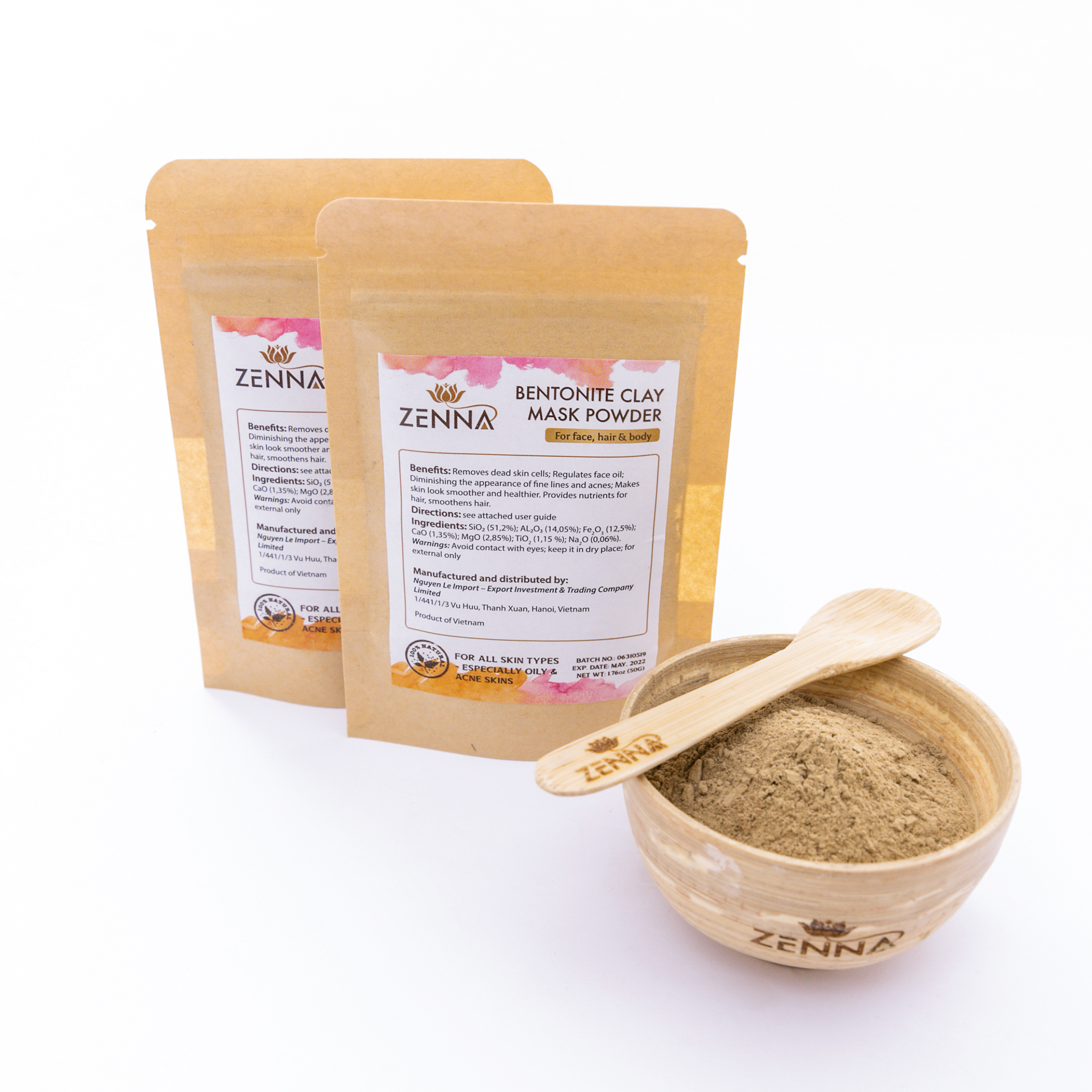 ✨Mặt nạ bùn khoáng núi lửa kiểm soát dầu và mụn, thanh lọc độc tố, tái tạo da ZENNA Bentonite Clay 100g kèm bộ bát thìa tre xinh xắn - Phù hợp cho mọi loại da đặc biệt da dầu và mụn