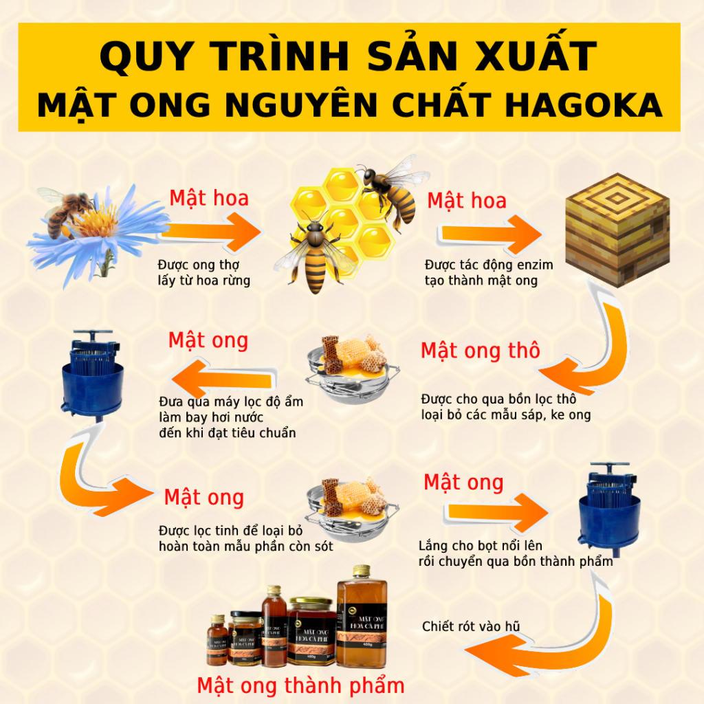 Với sản phẩm tươi sống, trọng lượng thực tế có thể chênh lệch khoảng 10%. Quy trình khai thác Mật Ong cà phê Nguyên Chất HAGOKA: Những giọt mật thơm ngon vàng óng và đặc
