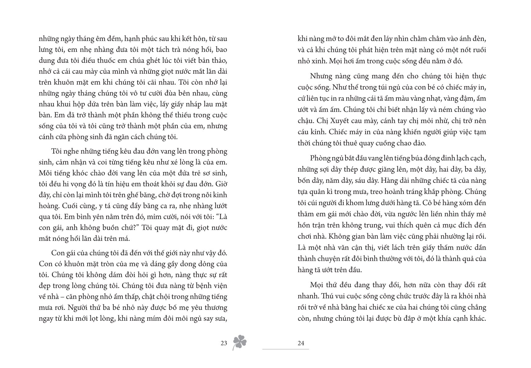 Mặt trời bé con là tập tản văn nhẹ nhàng mà giàu xúc cảm về gia đình, vừa kể, vừa chiêm nghiệm dưới góc nhìn của nhân vật “tôi” – người chồng học cách chung