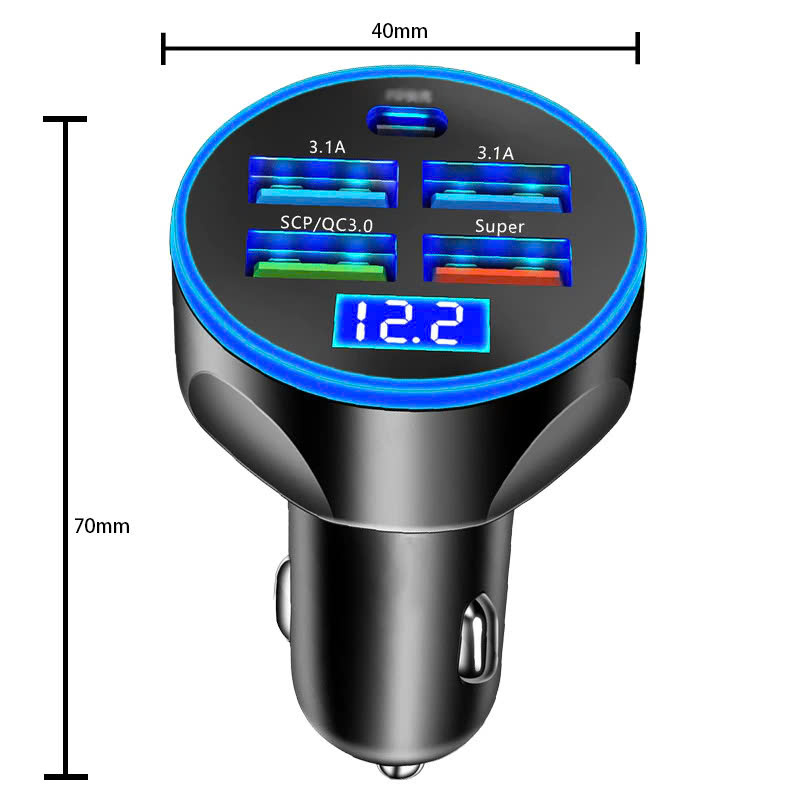 Tẩu sạc nhanh ô tô, sạc nhanh 120W, có đèn led hiển thị