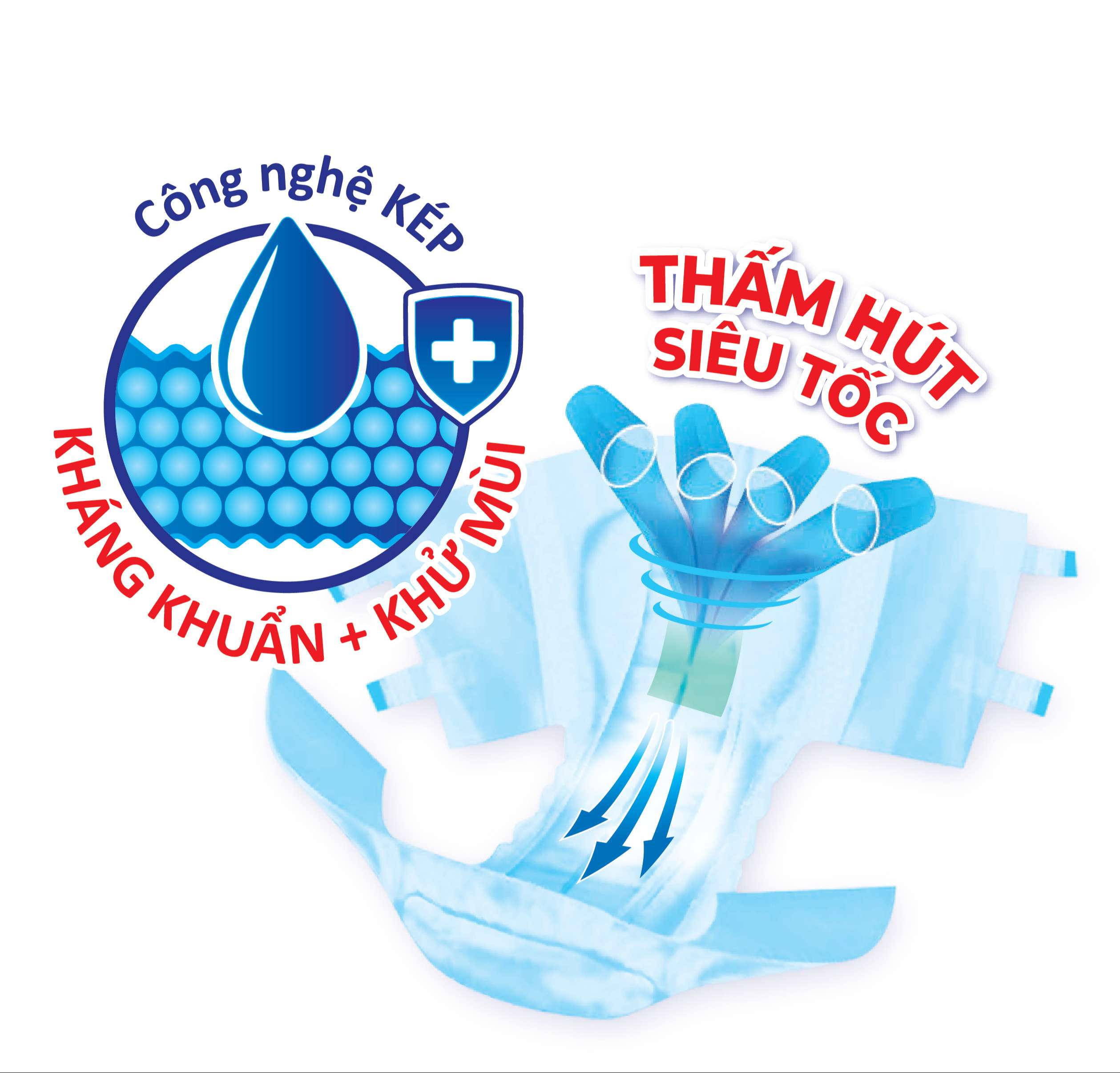 Chứa hạt siêu thấm, khả năng kháng khuẩn khử mùi Tã Dán Người Lớn SunMate có chứa hạt siêu thấm công nghệ mới, rất hiệu quả trong việc thấm hút, giúp ngăn ngừa tình trạng