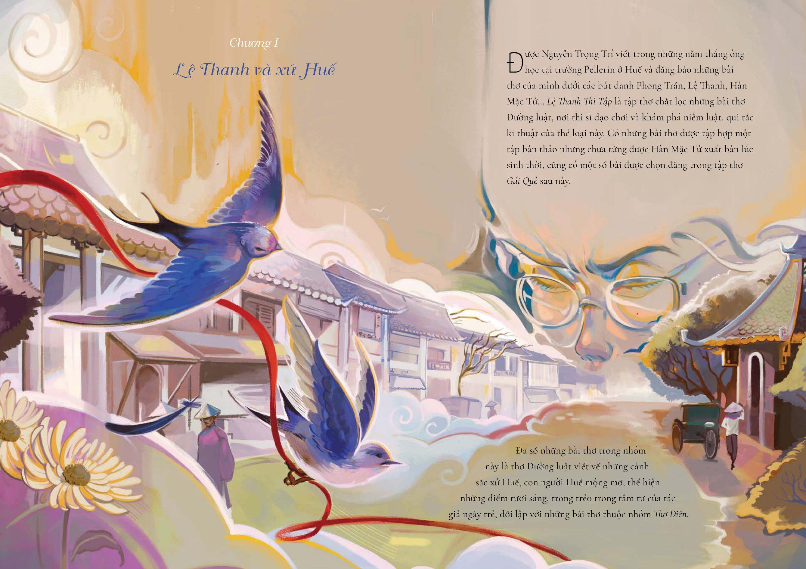 Với những minh họa sống động và đẹp đẽ, quyển sách này sẽ đưa bạn du ngoạn qua những vầng thơ bất hủ của Hàn Mặc Tử, trải dài từ Lệ Thanh Thi Tập, đến Gái Quê, và cuối cùng là Đau Thương (hay còn gọi là Thơ Điên).