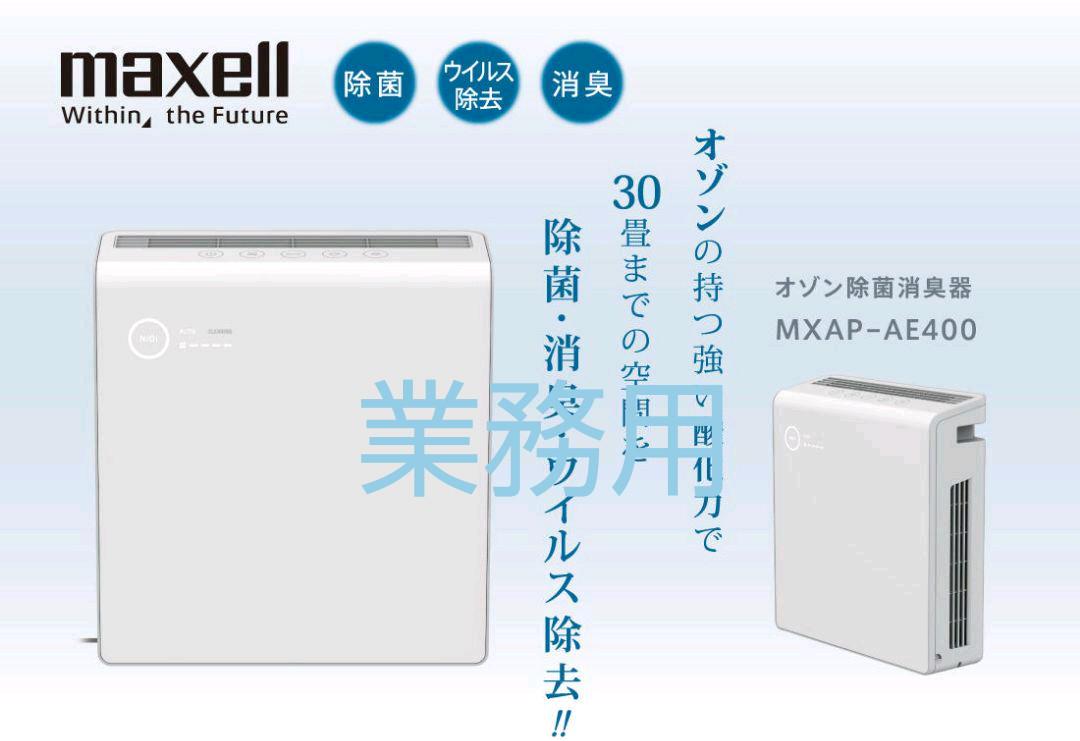 - Sử dụng động cơ quạt DC êm ái, độ ồn chỉ 35db. MXAP-AE400 Đã xác nhận tác dụng bất hoạt coronavirus mới (SARS-CoV-2) Tiến hành nghiên cứu chung thứ hai với công ty đại học công lập Đại học Y tỉnh Nara Ozone tồn tại trong tự nhiên và có tác dụng làm sạch bầu không khí. Máy khử mùi diệt khuẩn bằng ozone của Maxel phân hủy vi khuẩn, vi rút và mùi hôi bằng khả năng oxy hóa mạnh của ozone. Chúng tôi sẽ mang đến không gian thoải mái trong nhiều khung cảnh khác nhau. Khả năng oxy hóa mạnh của ozone phân hủy vi khuẩn, vi rút và mùi hôi ngay từ đầu * 1 Cách sử dụng: Máy khử mùi khử trùng ozone của Maxel giải quyết các vấn đề về khử mùi, khử trùng và diệt vi rút trong các tình huống sử dụng khác nhau.