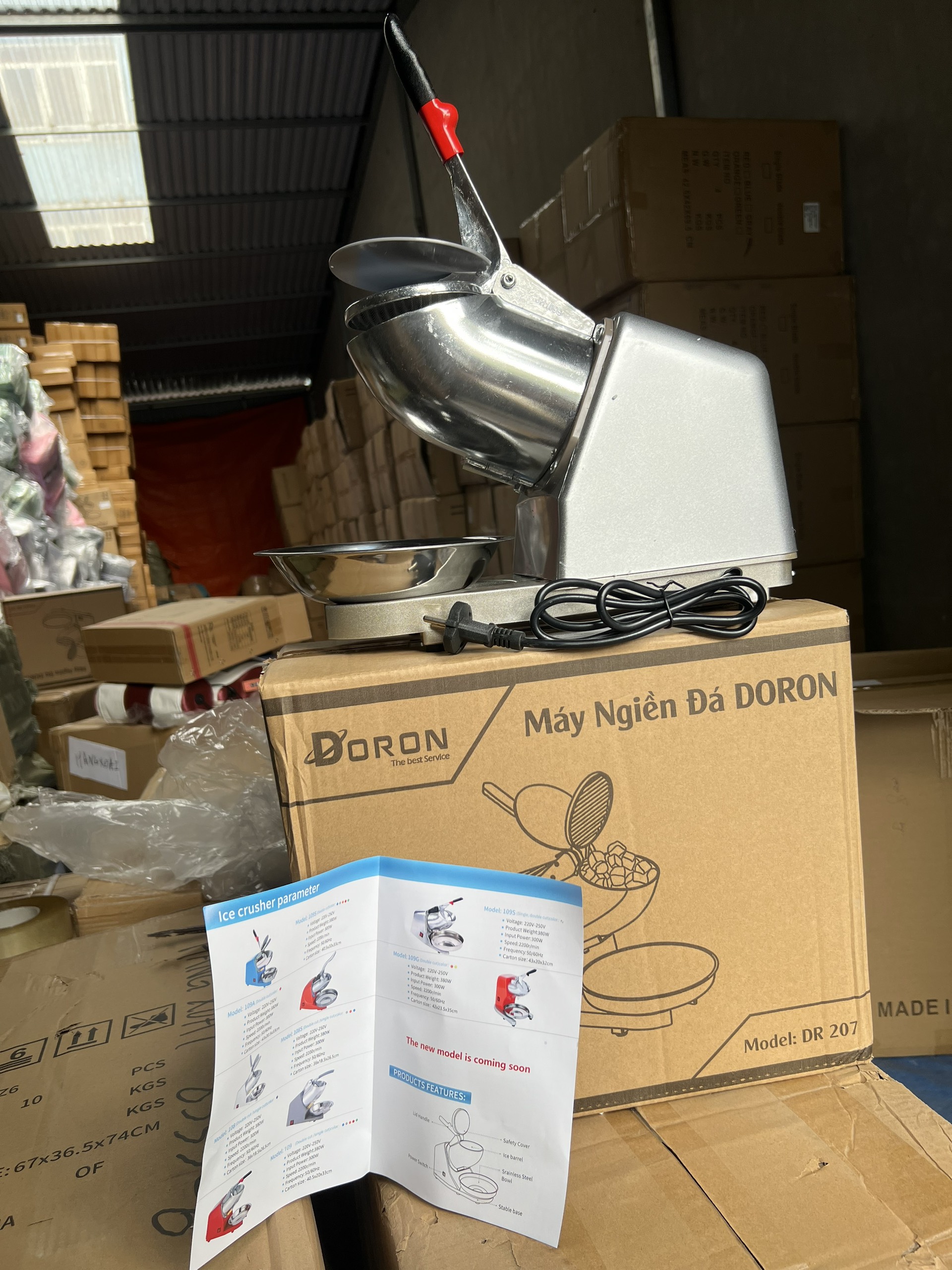 - Năng suất: 65kg/h CÔNG DỤNG/ TÍNH NĂNG SẢN PHẨM Bào đá cực nhuyễn và mịn Công suất máy 500W không tiêu tốn nhiều điện năng, giúp bạn tiết kiệm chi phí. Tuổi thọ máy có thể đạt đến 10 năm Thiết kế công tắc an toàn trên máy. Bạn cho đá vào hộc chứa, bật điện và kéo cần gạt xuống máy mới bắt đầu hoạt động đảm bảo an toàn cho bạn. CÁCH SỬ DỤNG Cách sử dụng đơn giản bạn chỉ cần ép cần gạt để máy xay đá, không cần phải có lực ép lớn và chỉ cần đẩy nhẹ nhàng. CAM KẾT