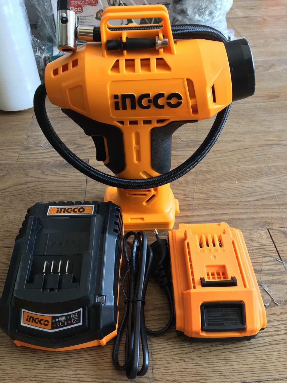 Máy bơm hơi cầm tay tự động dùng pin INGCO CACLI2001 là máy dùng không dây được chay bằng pin lithium - ion 20V là một ý tưởng hiện đại của ngành giải trí thể thao giúp cho việc bơm bóng, hay đồ chơi bể bơ một cách dễ dàng mà không cần phải tốn quá nhiều sức và thời gian, máy có thể bơm lốp xe ở những chỗ khó tiếp cận nhất một cách dễ dàng mà không cần phải bận tâm nhiều, máy được làm từ nhựa cao cấp có khả năng chống chịu tốt, có tay cầm khá nhỏ gọn và chắc chắn, và khó trơn tuột trong lúc làm việc giúp cho việc sử dụng máy đạt được hiệu quả một cách dễ dàng hơn