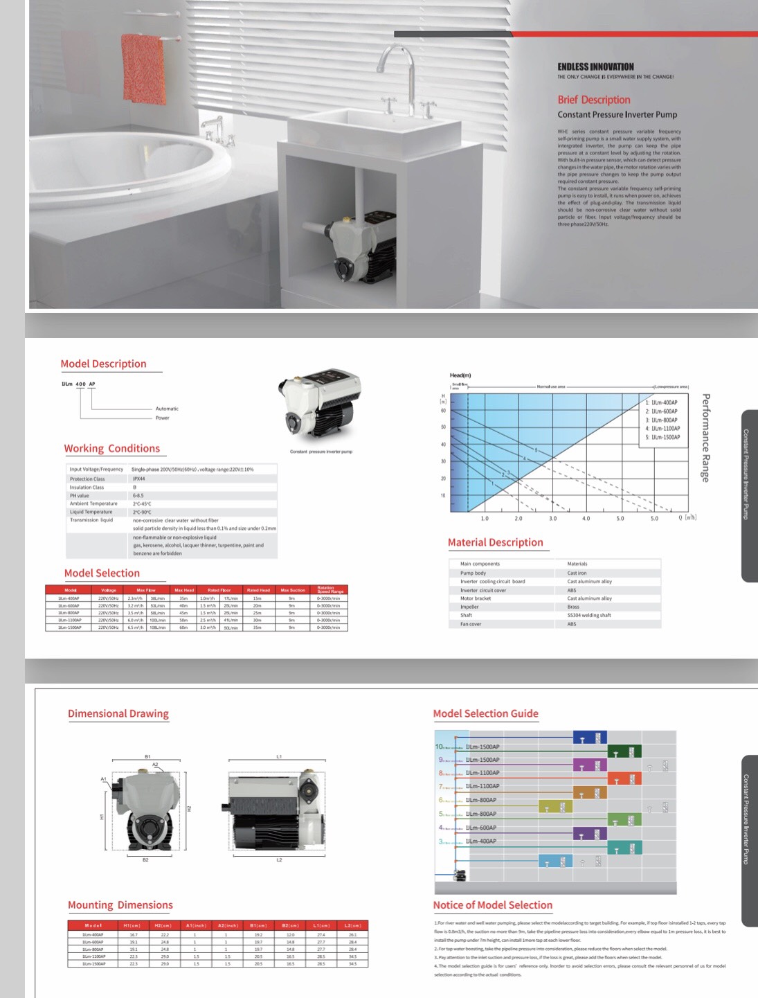CS : 2HP (Max 1.5KW); Điện áp 220V/50Hz Dây đồng 100%. Sử dụng tụ điện của Hàn Quốc. Tổng chiều cao cột áp : 30m Hút sâu tối đa : 8m Lưu lượng tối đa