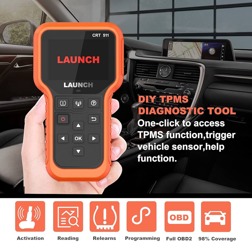 LAUNCH CRT511 TPMS Relearn Tool with 8pcs 2 in 1 315MHz & 433MHz TPMS Sensors, One-Click to Access TPMS Diagnosis, Activate/Relearn Sensors, Program RF-Sersors, Read/Clear TPMS DTCs Car OBD2 Scanner : Buy