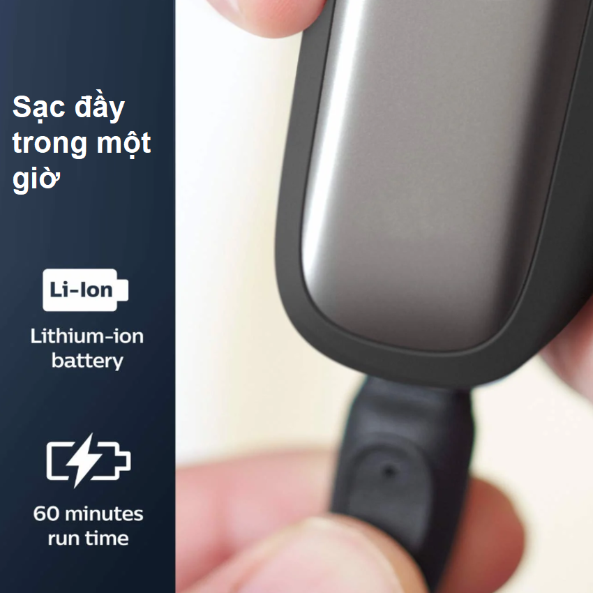 - Sạc đầy pin cho máy cạo râu Philips chỉ trong 1 giờ với pin lithium-ion mạnh mẽ và tiết kiệm điện. Bạn đang gấp? Hãy cắm điện cho máy cạo râu trong 5 phút và bạn có đủ điện cho 1 lần cạo. Trải nghiệm cạo râu trực quan hơn