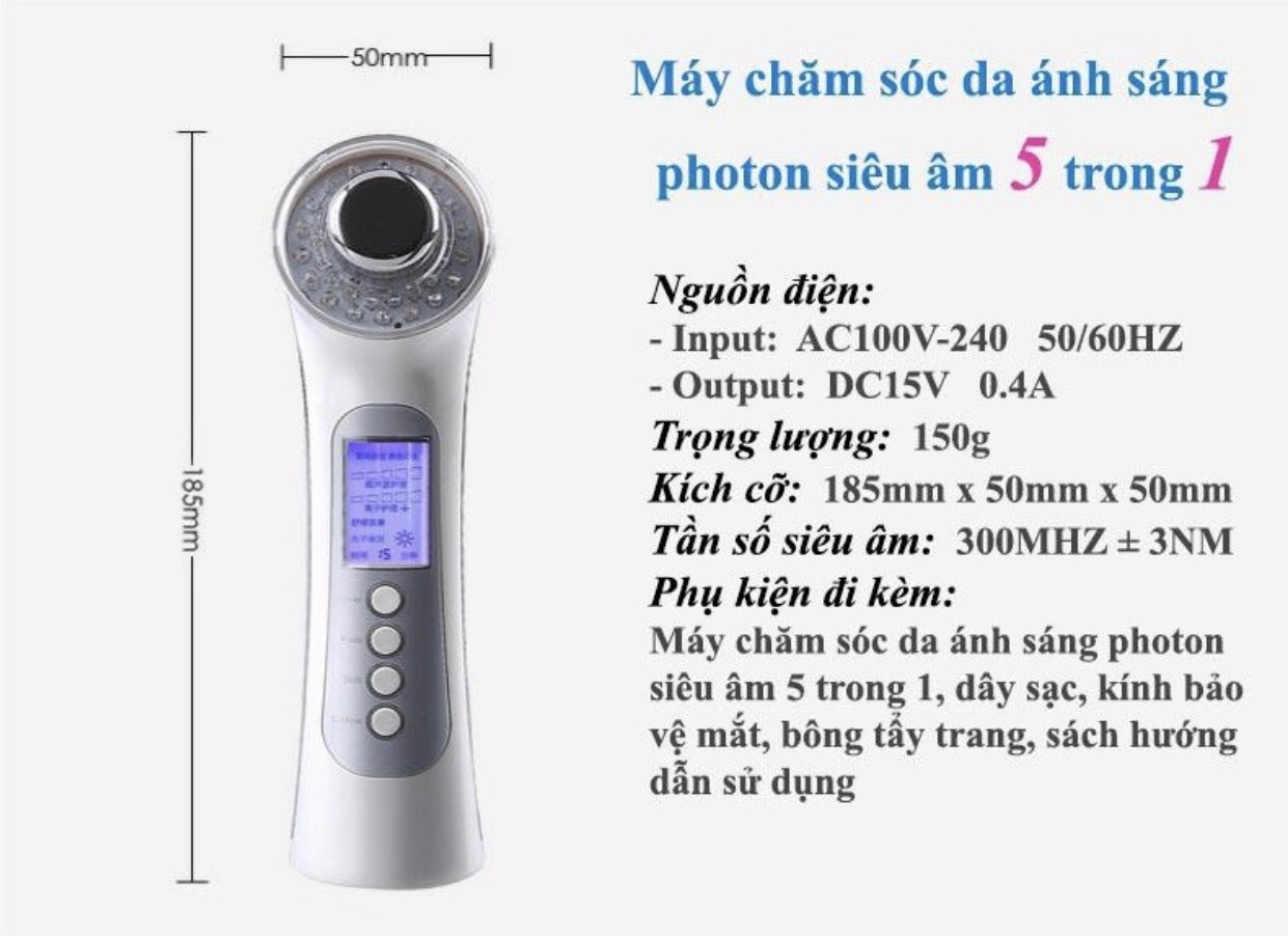 Màu sắc: màu Trắng Máy chăm sóc da ánh sáng photon siêu âm 5 trong 1 đã được chứng minh là một thiết bị có hiệu quả làm đẹp từ trong ra ngoài, tạo nên