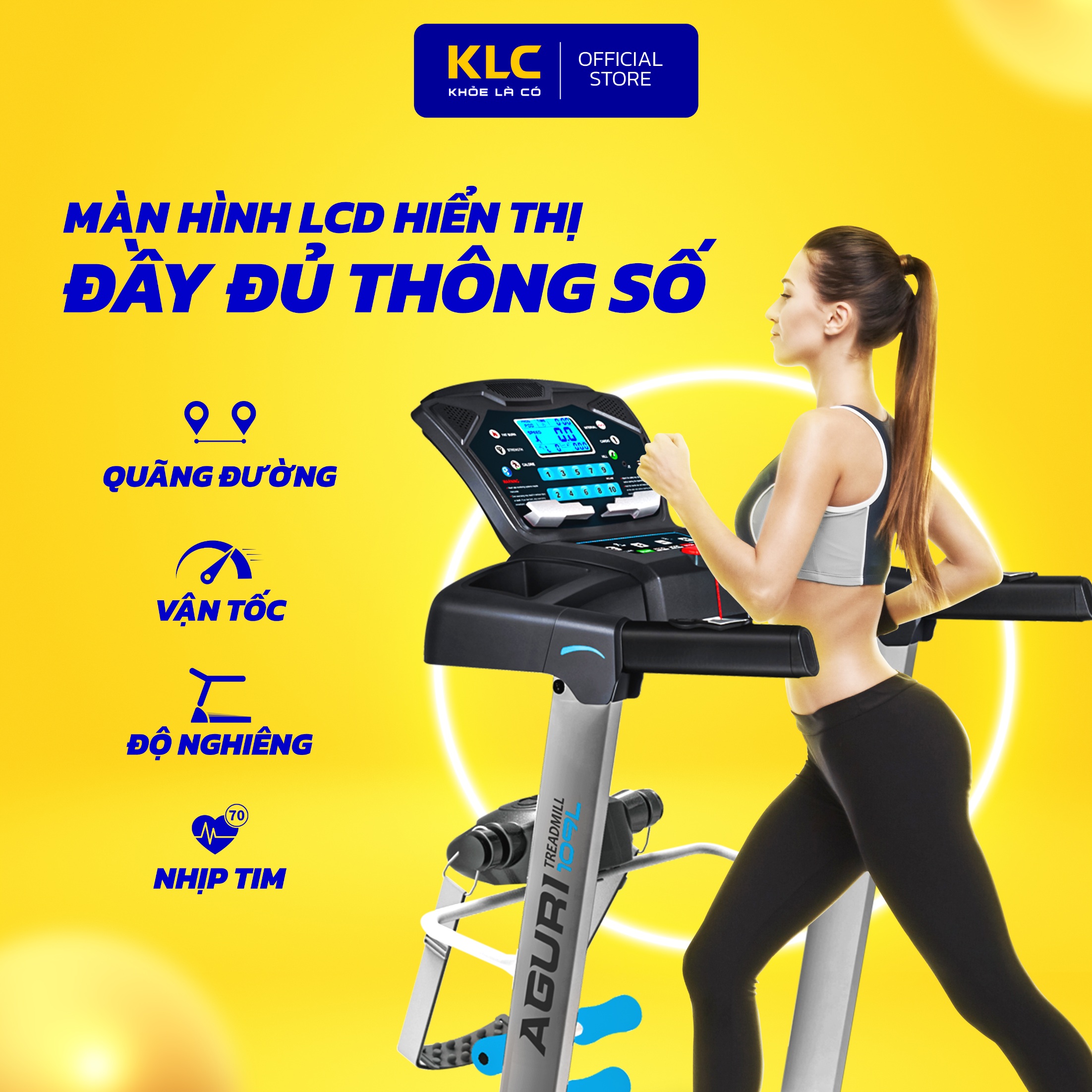 Máy chạy bộ AGURI AGT-115L *Thông tinmáy chạy bộ tại nhà AGURI AGT-115L - Motor DC công suất 3.5 HP - Màn hình LCD kích thước 5 inch hiển thị thời gian, quãng đường, vận