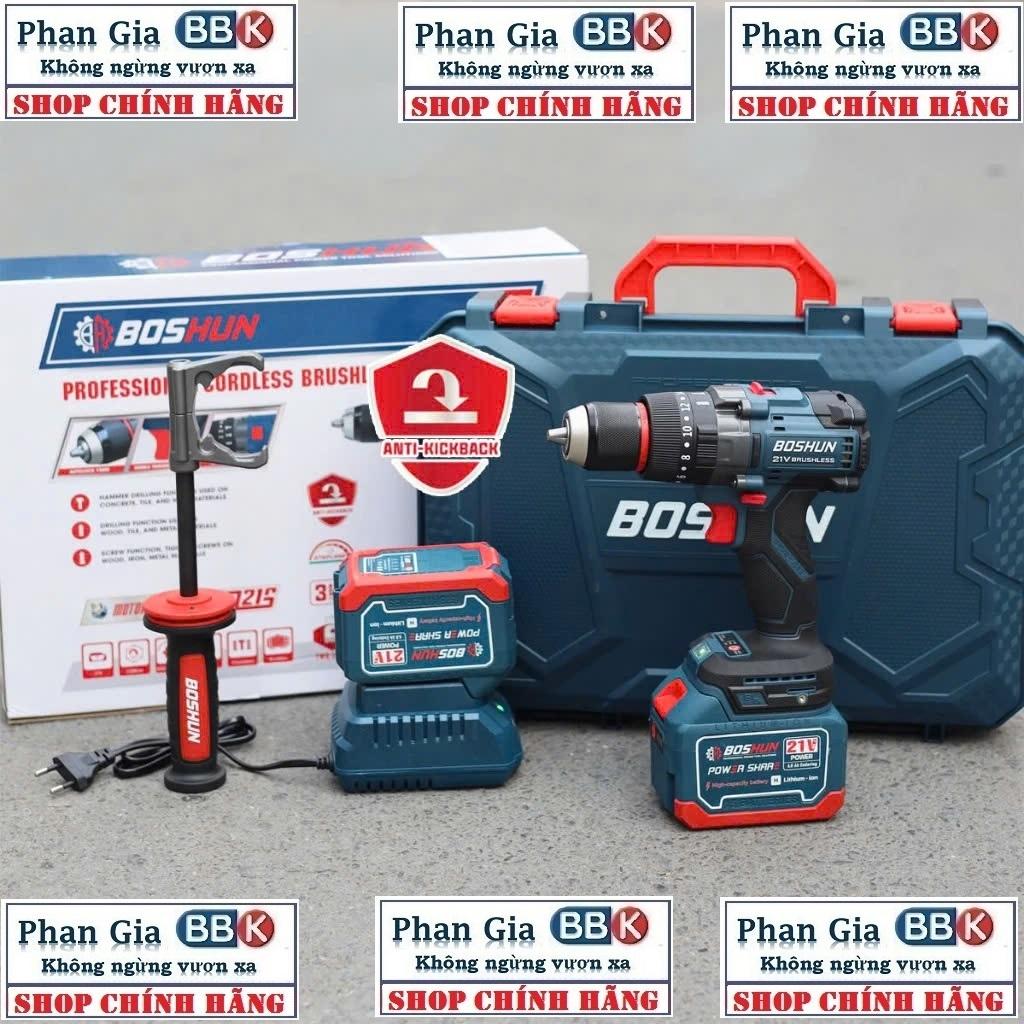 [Chính hãng] Máy Khoan Pin Boshun Không chổi than - Có búa - Khoan 3 chức năng AutoLock 13mm