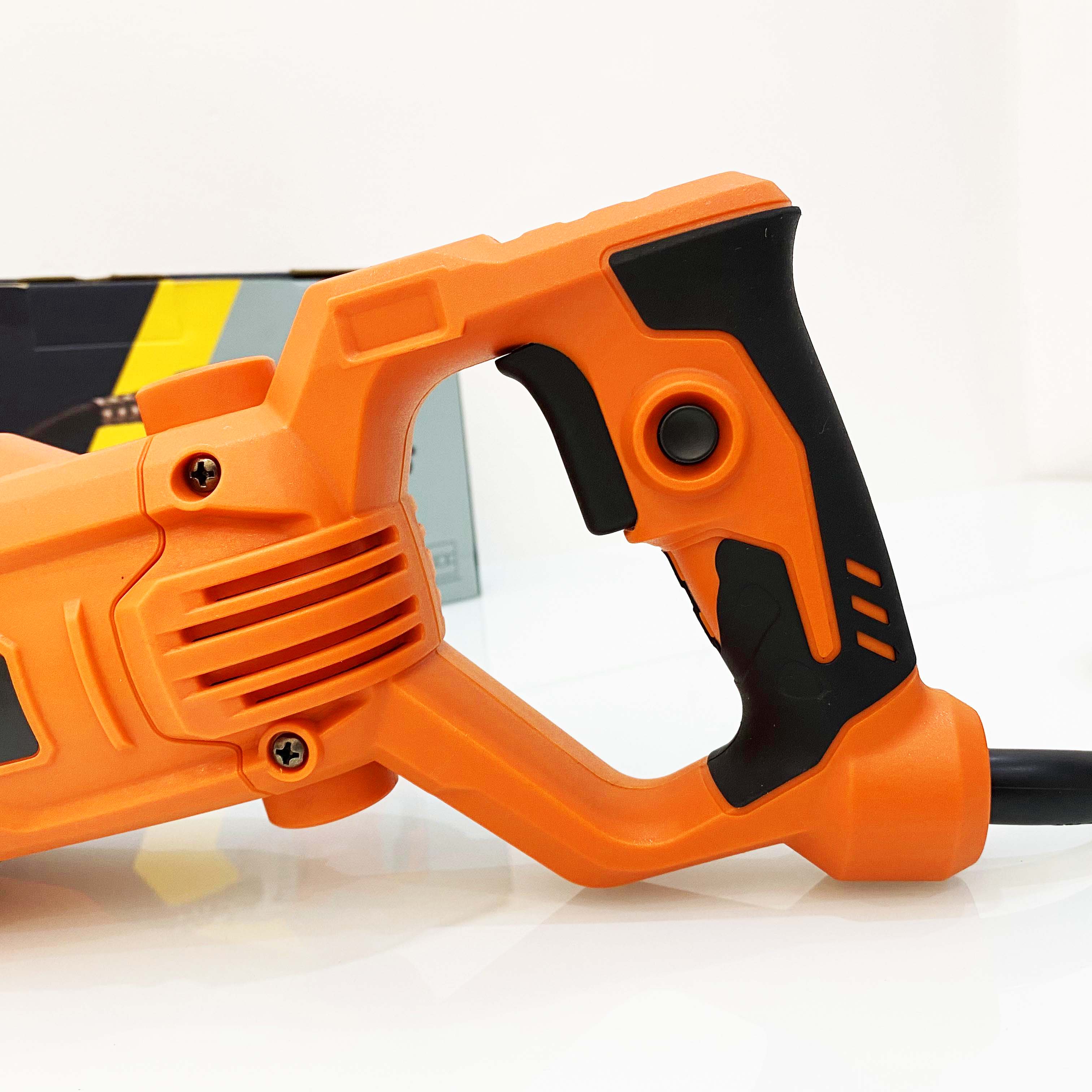 Máy đầm dùi bê tông cầm tay KYNKO Z1D-KD63-35 thiết kế đẹp mắt, khỏe khoắn, ấn tượng với vẻ bề ngoài góc cạnh. Máy có màu cam đỏ là màu đặc trưng của hãng Kynko rất hấp dẫn bắt mắt với người sử dụng. Phần vỏ máy được sử dụng nhựa nguyên chất PA6 nhập khẩu từ Đức nên có độ bền cao chịu va đập tốt, vỏ máy dầy dặn phù hợp với tính chất hoạt động ngoài công trình. Phần vỏ máy khu vực bánh răng được làm từ hợp kim nhôm cho độ bền và ổn định cao, đồng thời là tấm chắn bê tông hữu hiệu không cho xâm nhập vào phần bánh răng và động cơ máy. Phần tay cầm chữ D có lớp bọc cao su tạo sự êm ái, mềm mại giúp cho người dùng lâu không bị đau mỏi. Công tắc có chốt khóa rất thuận tiện cho người sử dụng trong quá trình vận hành lâu dài trên công trường.