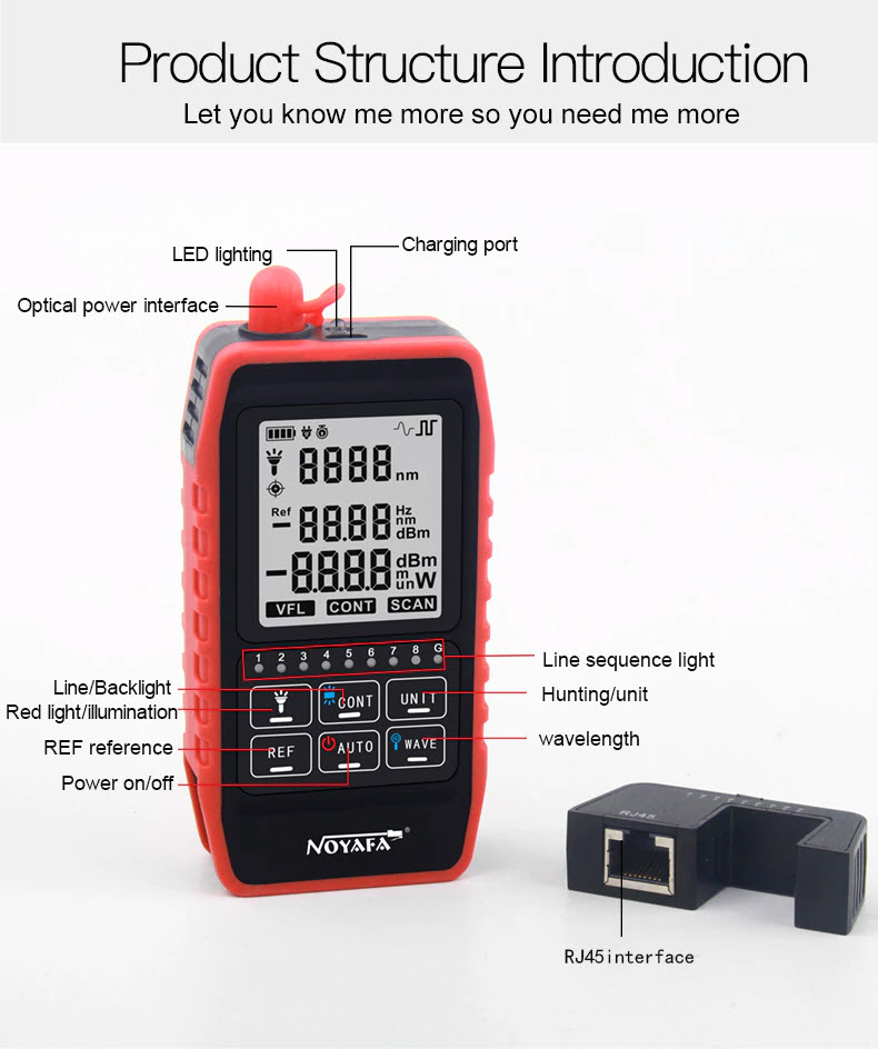 ✨Máy Đo Công Suất Quang Và Test Cáp Mạng NOYAFA NF-908 (Dùng Pin Sạc) - Hàng Chính Hãng. NOYAFA NF-908 Multifunction Optical Power Meter Visual Fault Locator Network Cable Test Optical Fiber Tester