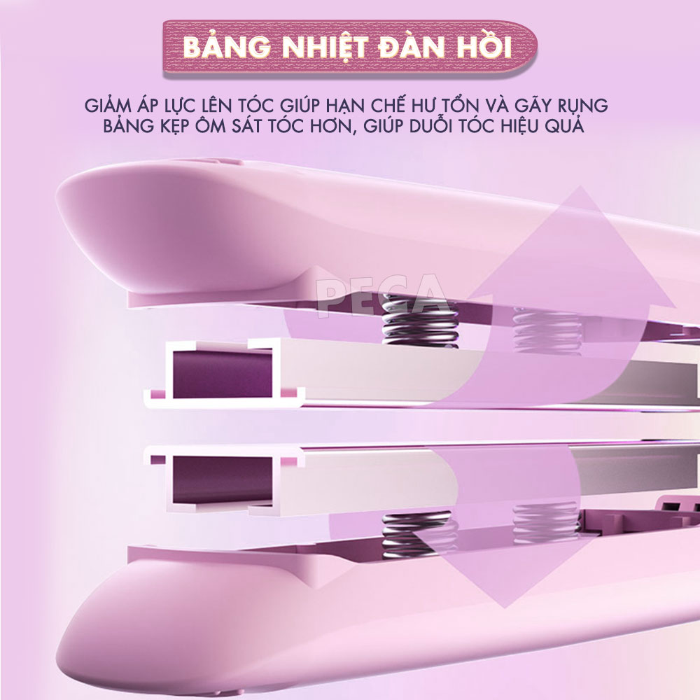 Mua tại TiktokMÁY DUỖI TÓC KEMEI KM-3142 CHUYÊN NGHIỆP ĐIỀU CHỈNH 10 MỨC NHIỆT PHÙ HỢP SỬ DỤNG VỚI MỌI LOẠI TÓC - HÀNG CHÍNH HÃNG Máy duỗi tóc Kemei KM-3142 là sự lựa chọn hoàn hảo cho những ai muốn sở hữu mái tóc thẳng mượt mà như vừa được chăm sóc tại salon ngay tại nhà. Với thiết kế hiện đại, màu sắc dễ thương tông hồng nổi bật, máy không chỉ là một công cụ làm đẹp mà còn là phụ kiện thời trang đẳng cấp. ƯU ĐIỂM NỔI BẬT: Máy duỗi tóc Kemei KM-3142 sử dụng tạo nhiều kiểu tóc chuyên dụng: duỗi thẳng, uốn cụp đuôi,.. 1/ Cấu tạo bảng nhiệt: Cấu tạo ba lớp: