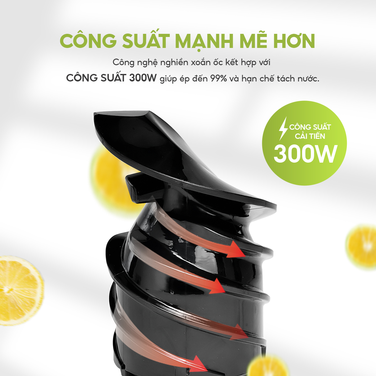 -  Công suất 300W, động cơ DC bền bỉ ép kiệt bã lên đến 99%