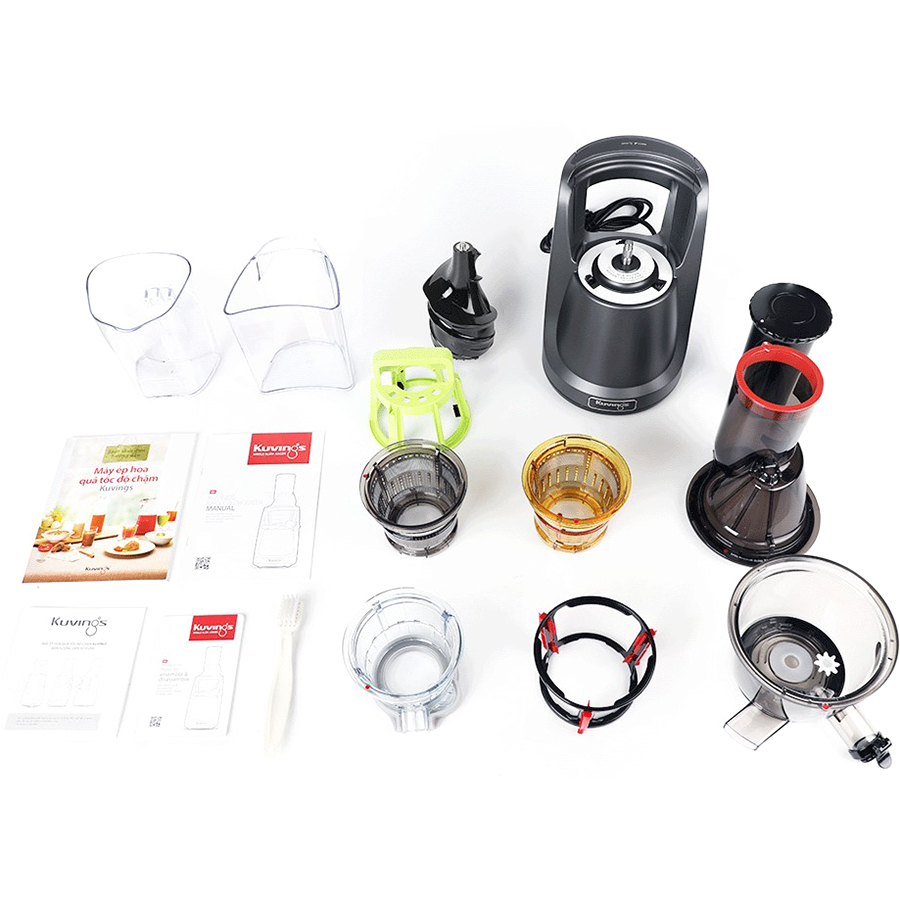Máy ép trái cây tốc độ chậm hiệu Kuvings Series Hands-Free tự động cắt và ép trái cây cho lượng nước ép nhiều gấp 2 lần, giữ được nhiều Vitamin, Enzym trong rau củ quả gấp