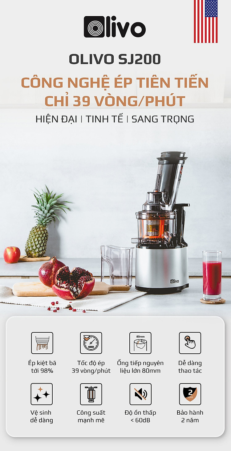 ✨Máy Ép Chậm Olivo SJ200 Thương Hiệu Mỹ Vỏ Hợp Kim Trái Cây Ép Kiệt 96% Dung Tích 0.5 Lít Công Suất 200 W - Hàng Chính Hãng