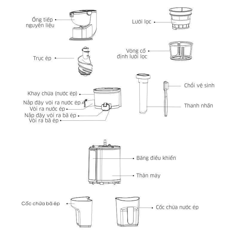 ĐẶC ĐIỂM NỔI BẬT - Công nghệ Đức - Ép kiệt bã đến 97%, mang cho bạn lượng nước ép nhiều hơn so với các loại máy thông thường - Bảo toàn toàn bộ chất