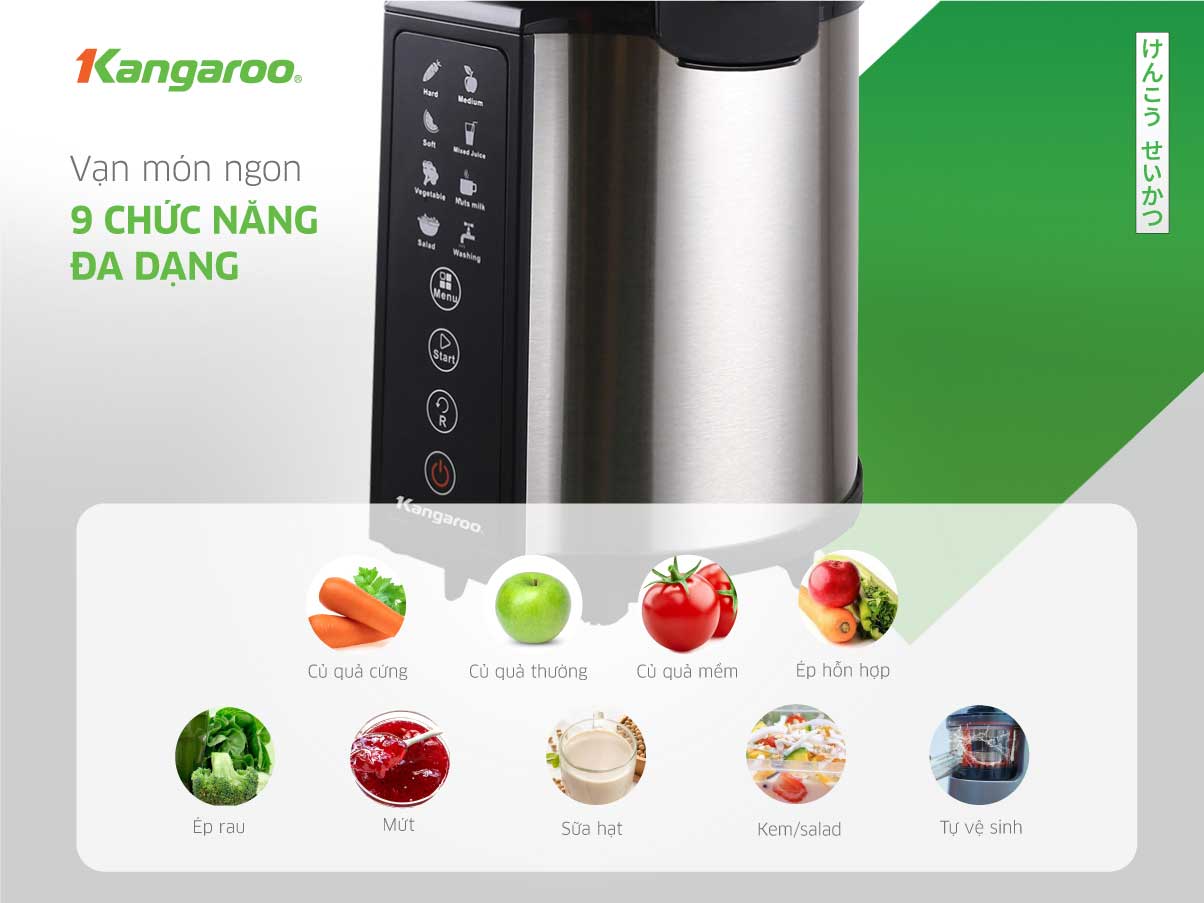 Máy ép chậm Kangaroo KG200SJD1 (200W - 665ML) Máy ép chậm Kangaroo KG200SJD1 áp dụng công nghệ ép chậm thông minh, không bào mòn rau củ quả, bảo toàn 100% dưỡng chất tự nhiên. Tốc