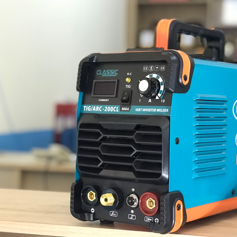 -Máy hàn Classic TIG/ARC-200CL là sự kết hợp hoàn hảo giữa máy hàn TIG và máy hàn que. Thiết kế này giúp tiết kiệm chi phí, tiết kiệm diện tích đặt máy, làm được nhiều công việc hơn.