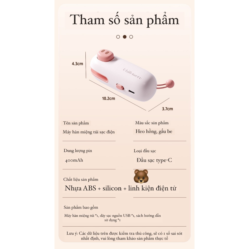 Mua tại TiktokMáy Hàn Miệng Túi Cầm Tay Cute, Máy Ép Miệng Túi Đồ Ăn Vặt Sạc Pin Tích Hợp Nam Châm Kèm Đầu Cắt Tiện Dụng - Hàng Chính Hãng MINIIN