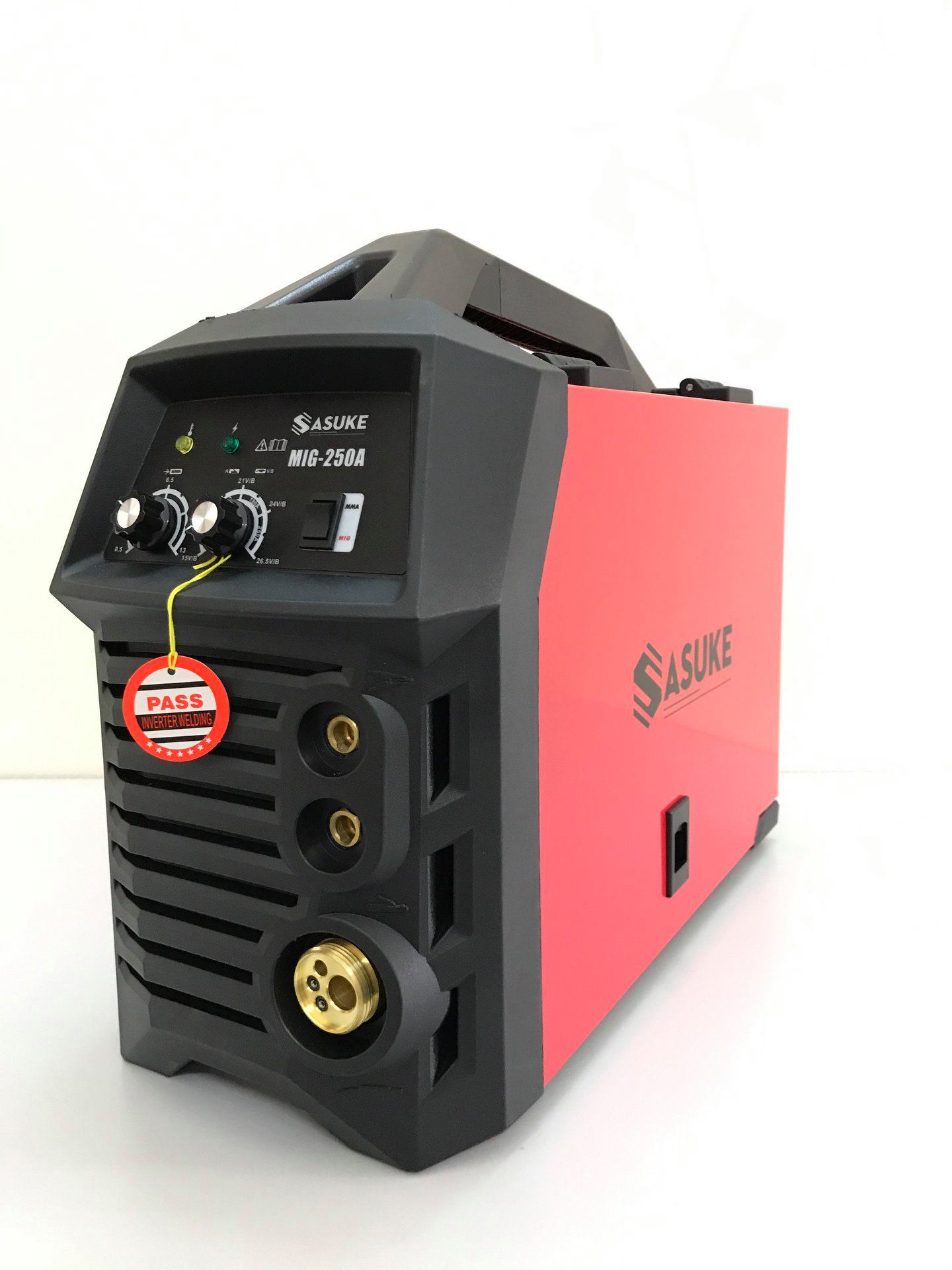 Máy hàn Sasuke Mig 250A sử dụng que hàn đường kính 1.6mm - 4.0mm Máy hàn mig Sasuke 250A là dòng máy hàn điện tử nhỏ gọn với trọng lượng chỉ 11.6kg giúp xách tay di chuyển khi