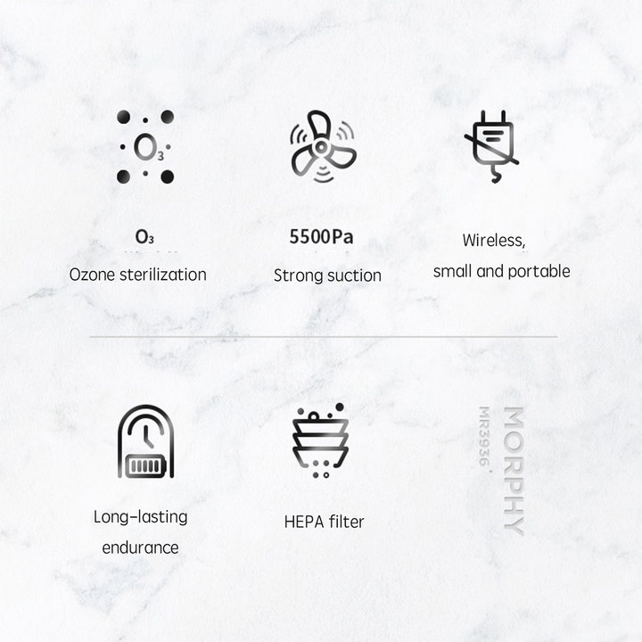 - Máy hút bụi mini MR3936 được nhà sản xuất trang bị động cơ Morphy DC motor pro có khả năng hoạt động mạnh mẽ với lực hút tối đa lên đến 5500Pa cùng tốc độ động cơ tăng lên 38000 vòng/ phút. Lưỡi dao điều khiển Turbo được thiết kế để dễ dàng lấy sạch bụi, mảnh vụn, giấy, tro, tóc, các loại hạt, tiền xu, trên xe ô tô một cách hiệu quả. Ngoài ra khi hoạt động máy hút bụi chỉ tạo ra tiếng ồn thấp, không ảnh hưởng đến sinh hoạt hàng ngày của người dùng. Bộ lọc HEPA thanh lọc, khử mùi