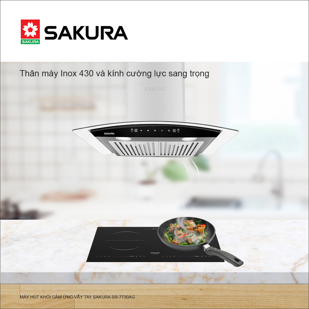 -Máy hút khói SAKURA, treo tủ kệ -Hút - xả trực tiếp bằng ống thoát -Khử mùi bằng than hoạt tính -Thân máy inox -2 motor, 3 nấc tốc độ, 1 đèn chiếu sáng -Lưới