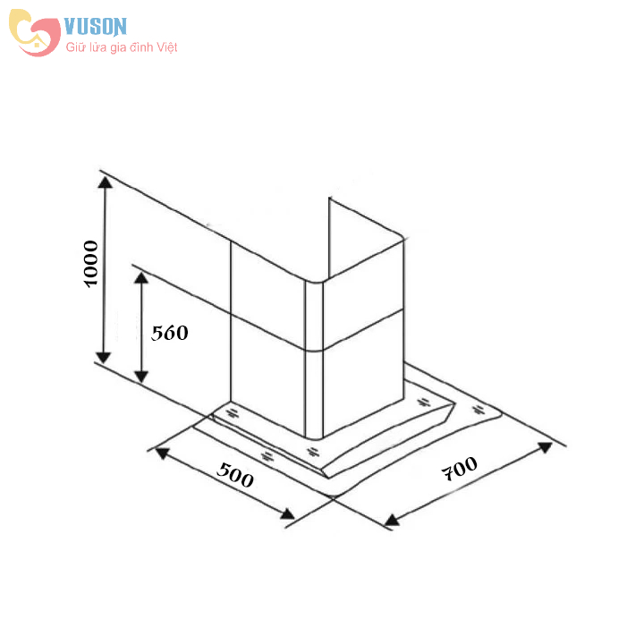 Khử mùi dạng kính cong nổi bật, kích thước 70cm