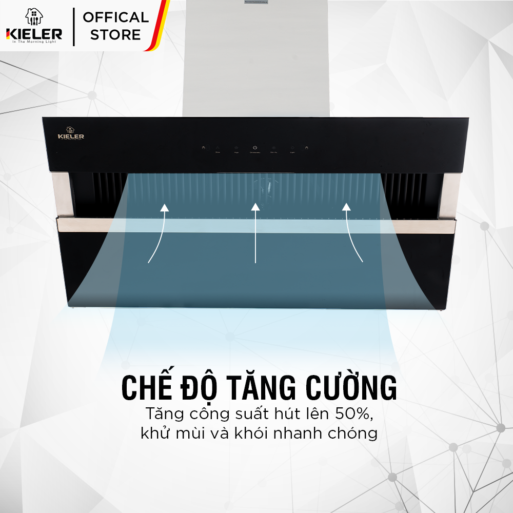- Tên sản phẩm: Máy hút mùi KIELER KL-SUPER970 công suất hút cao, không gây tiếng ồn, kiểu vát kính sang trọng, điều khiển bằng cử chỉ