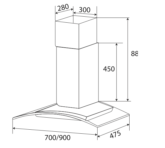 • Máy hút mùi kính cong • Thân bằng inox sáng đẹp • Kính cường lực dày 08mm tráng men bóng cao cấp • Điều khiển cảm ứng 3 tốc độ • Lưới lọc nhôm