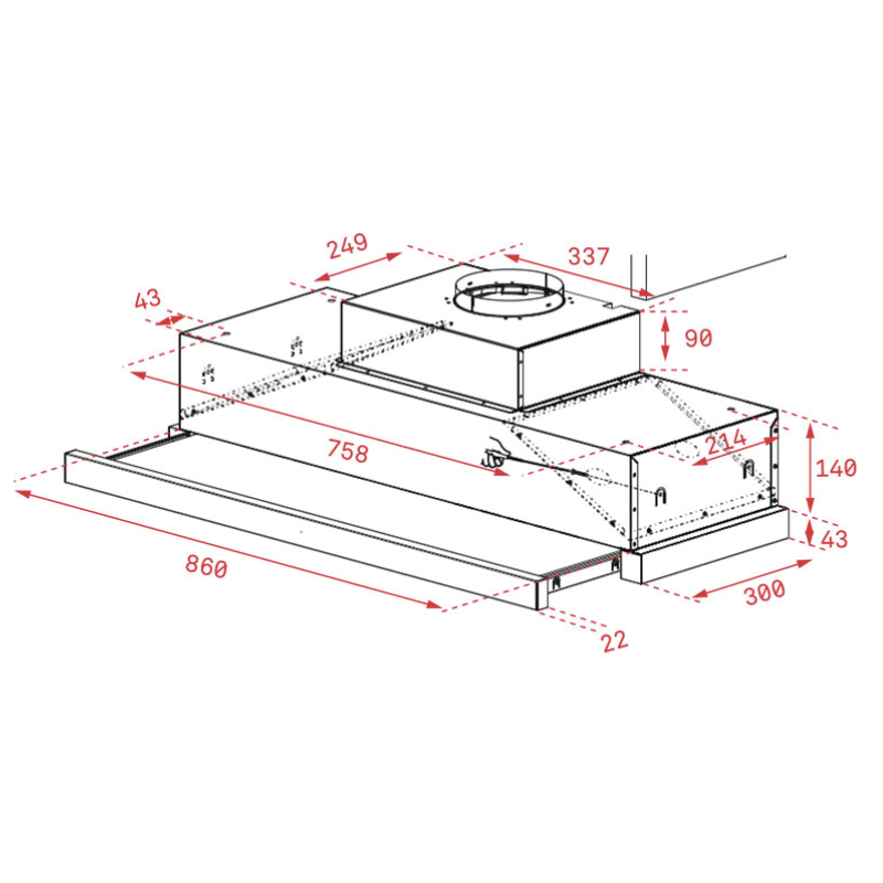 • Máy hút mùi âm tủ • Chất liệu kính phối inox sang trọng • Kết cấu âm tủ tiện lợi • Động cơ đôi 2x80W • Đèn led 2×1.5W • Nguồn điện 220V –