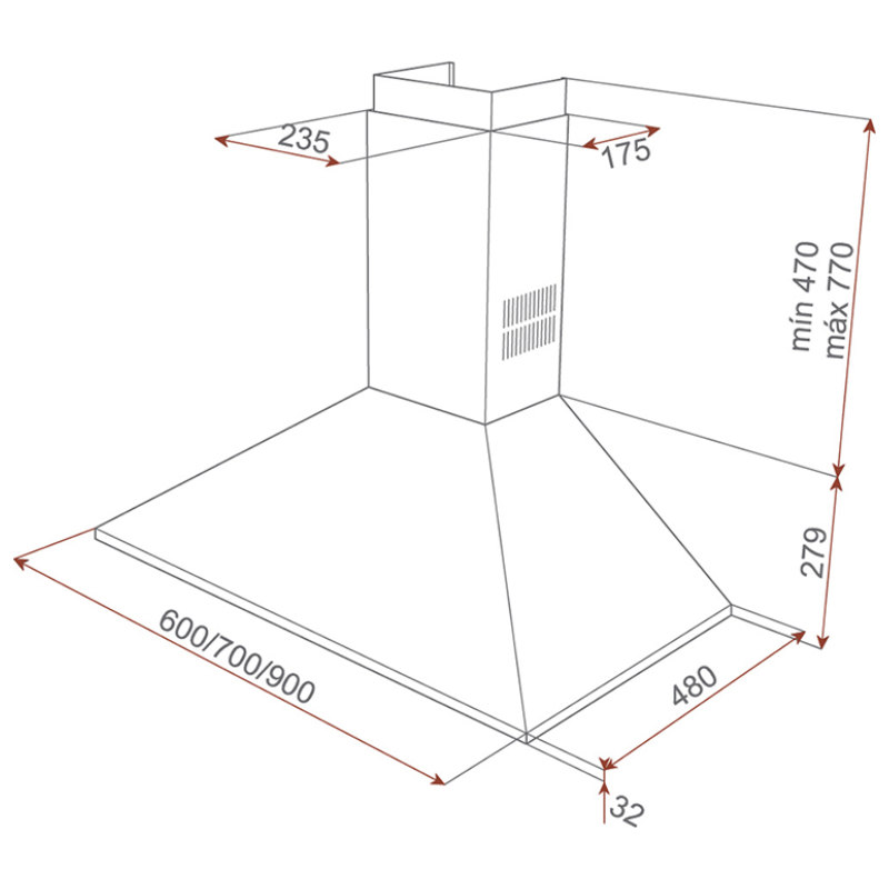 Máy hút mùi cổ điển • Thân bằng inox sang trọng sáng đẹp • Hệ thống điều khiển cơ 3 tốc độ • Động cơ Turbin đôi 2×80 W • Đèn chiếu sáng halogen 2×15