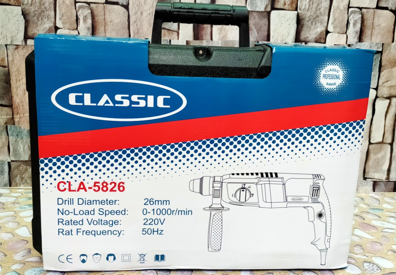 -Máy khoan bê tông có 3 chức năng: khoan, búa, vừa khoan vừa búa. Classic CLA 5826 thích hợp sử dụng cho gia đình, thợ sửa chữa cơ khí, điện nước.