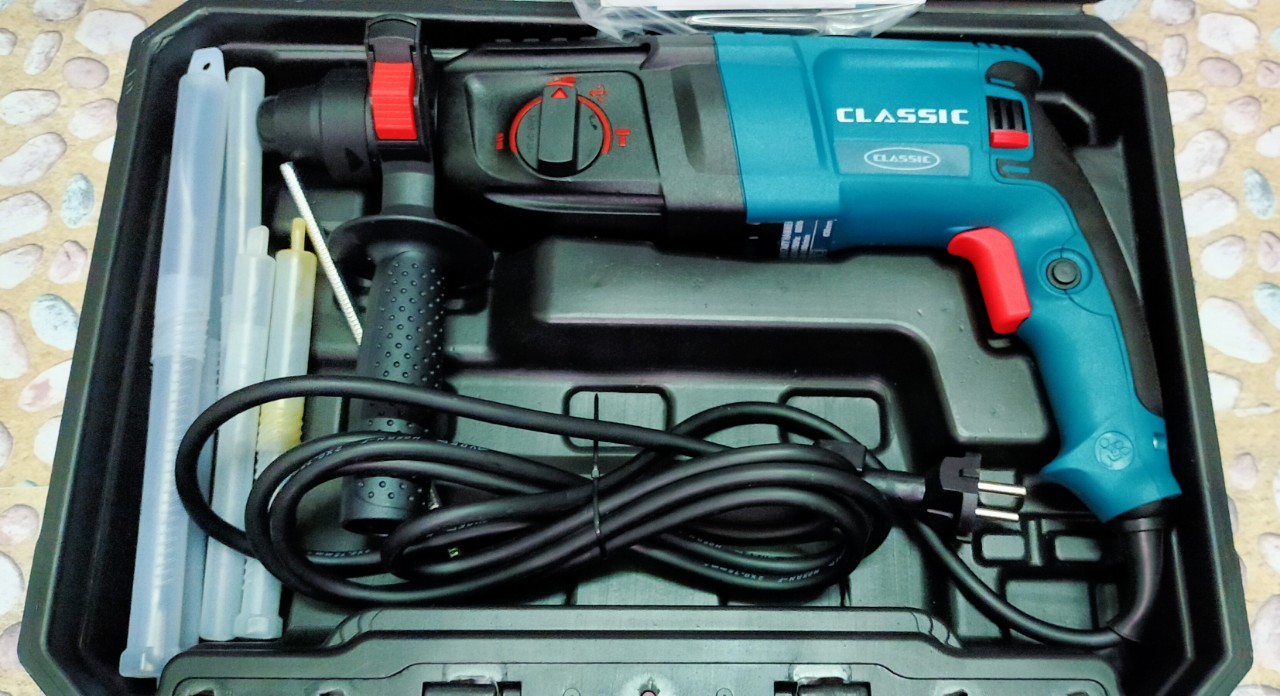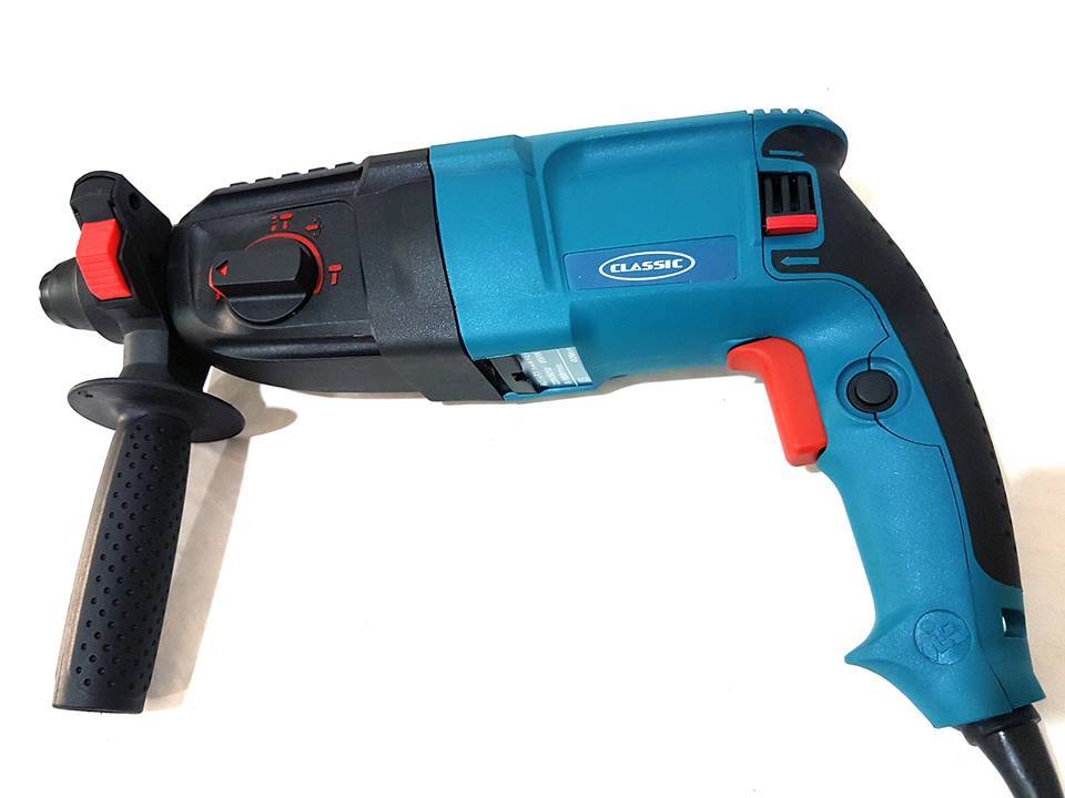 -Máy khoan búa Classic có công tắc đảo chiều, khi muốn khoan liên tục bạn có thể nhấn nút tròn gần tay cầm chính. Classic CLA 5826 thiết kế máy khoan gọn gàng, tay cầm phụ lắp đặt chắc chắn. Với tay cầm phụ giúp bạn làm việc không bị mỏi tay. Máy khoan sử dụng mũi khoan SDS plus nên lắp đặt nhanh chóng.
