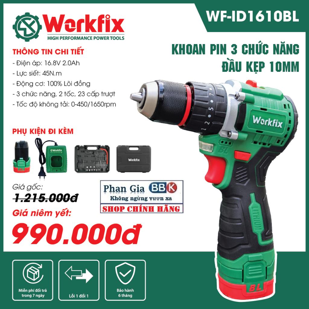 Máy khoan pin WORKFIX 16.8V WF-ID1610BL Auto lock – Không chổi than tặng bộ phụ kiện 24 chi tiết