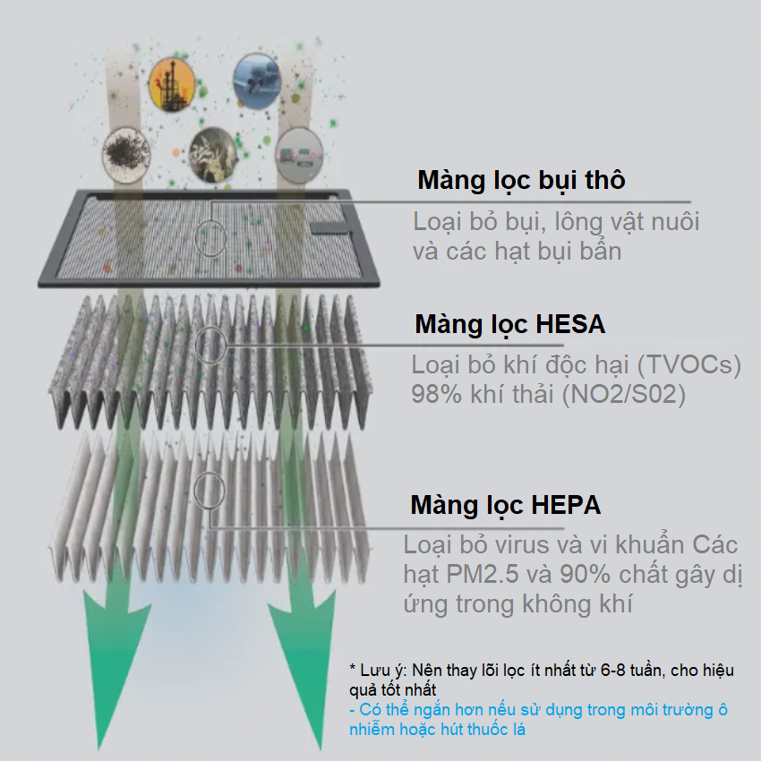 - Lọc các hạt mịn PM2.5 có hại chỉ trong vòng 6 phút