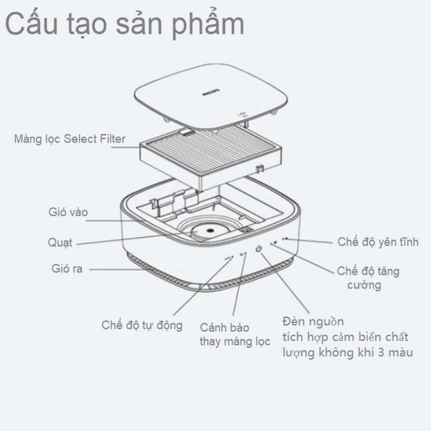 - Lọc các hạt bụi siêu nhỏ PM2.5: CADR là 20m3/giờ